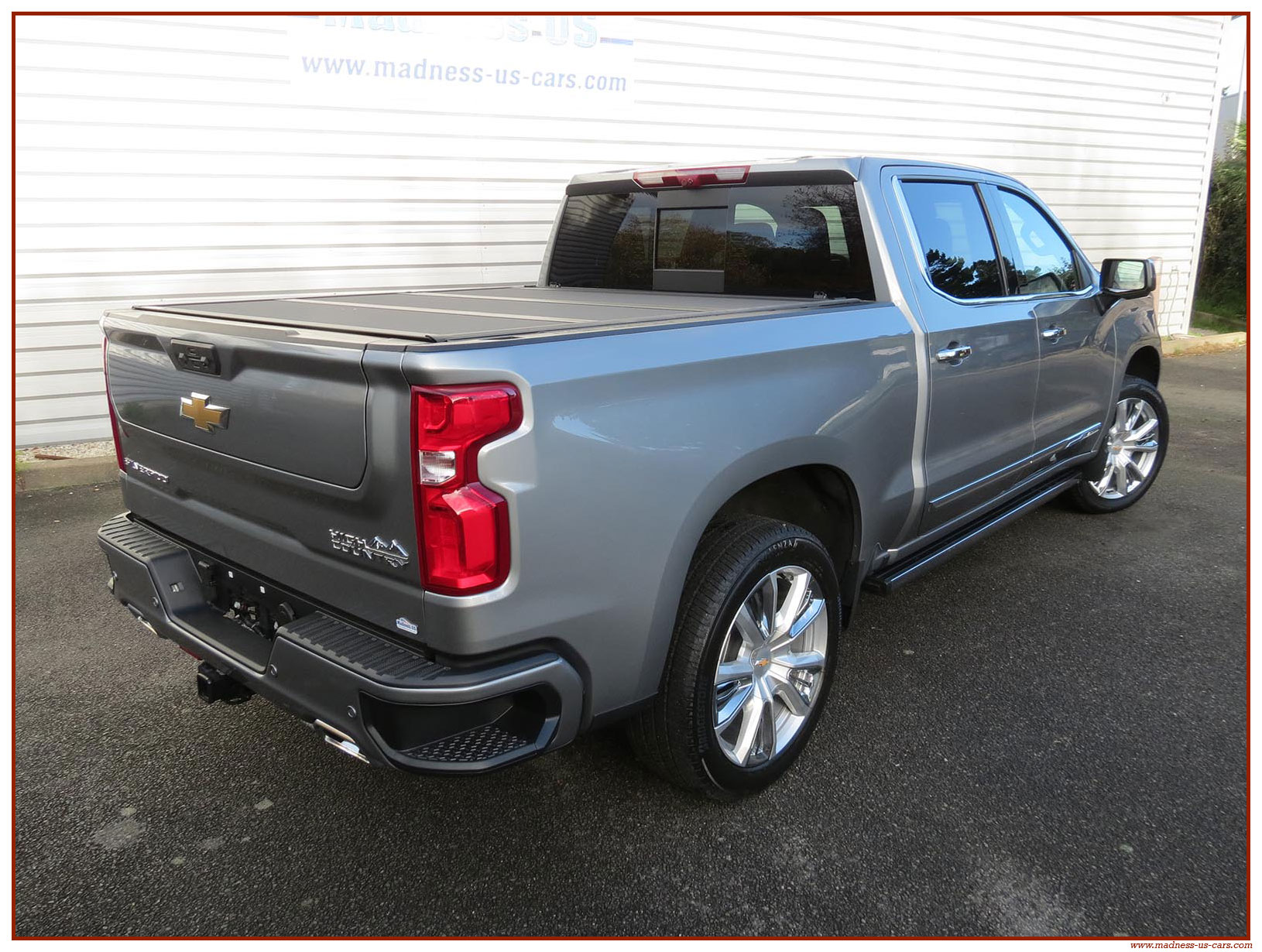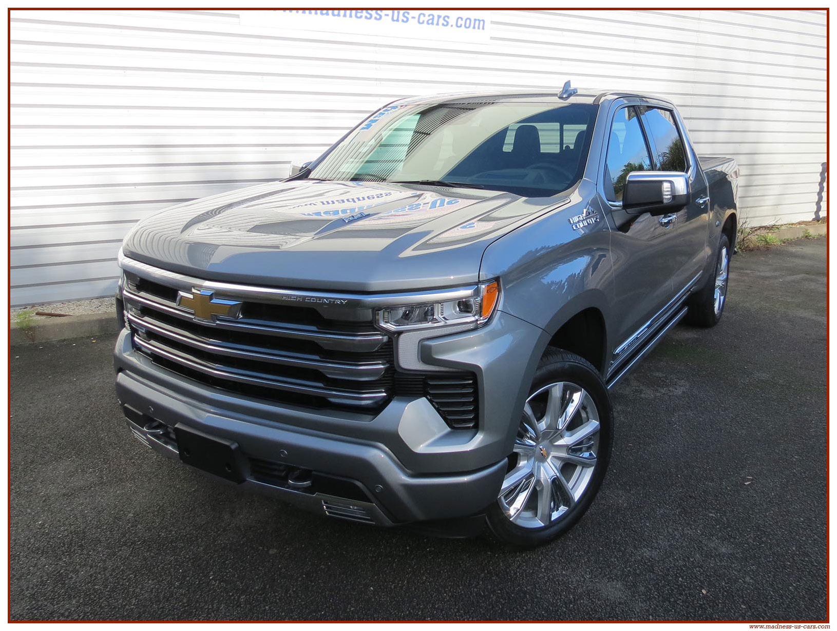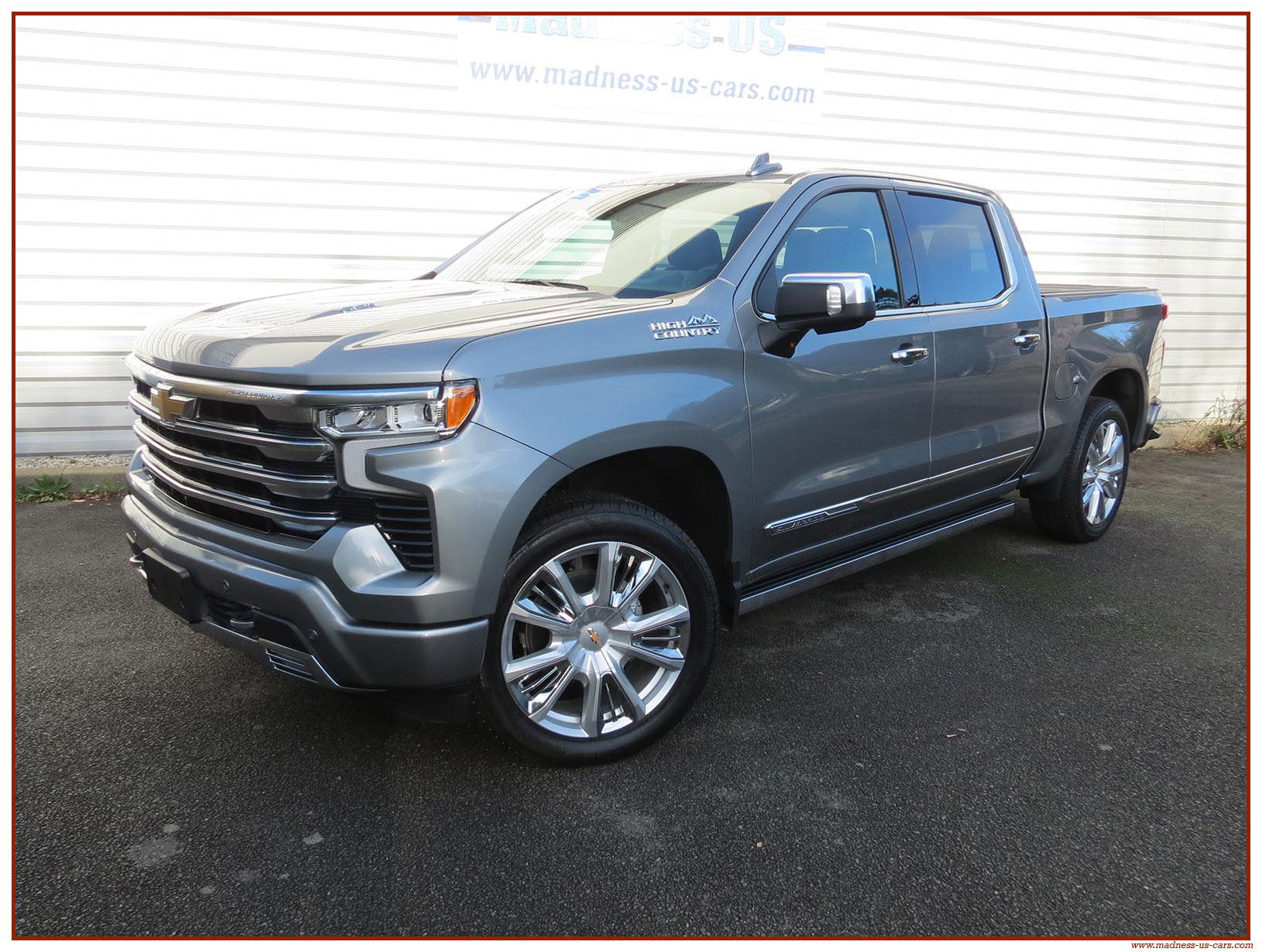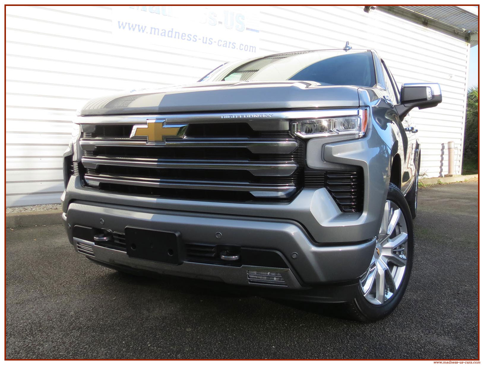 Le Chevrolet Silverado High Country propose un équipement haut de gamme et moderne : Système multimedia Bose, Bluetooth, caméra 360°, radars de stationnement, sièges électriques en cuir chauffants et climatisés, régulateur de vitesse avec anti collision, avertisseur de franchissement de lignes blanches ... Le Chevrolet Silverado High Country est disponible chez Madness US, neuf, homologué en France et garanti pendant 24 mois.