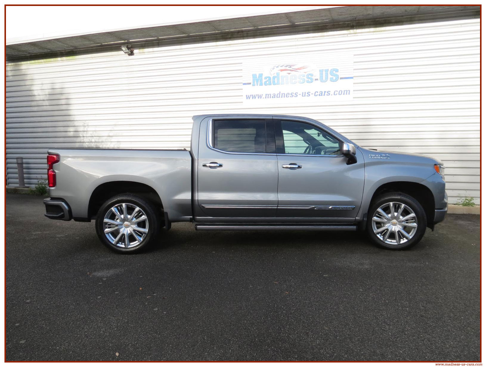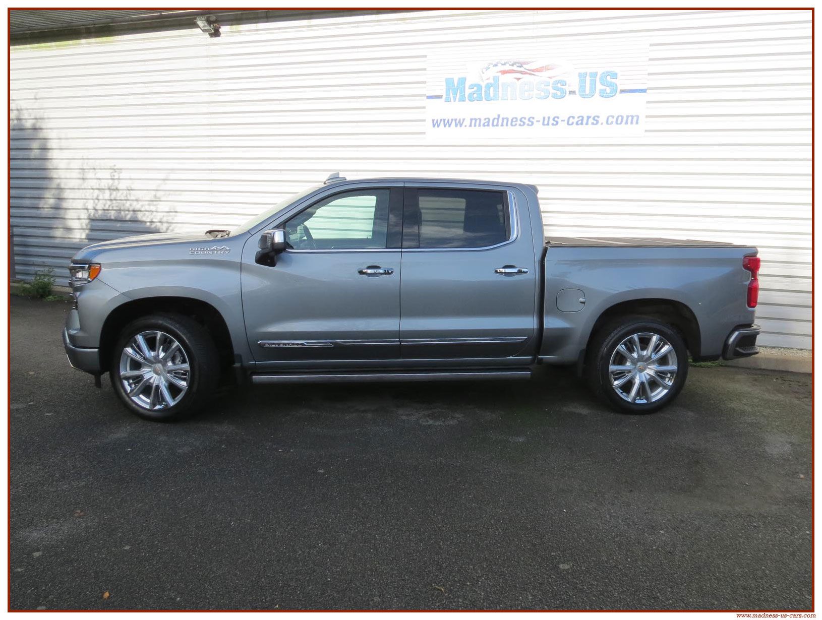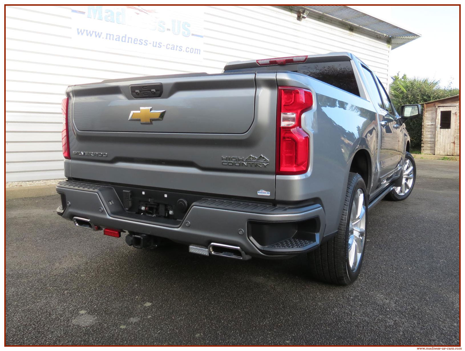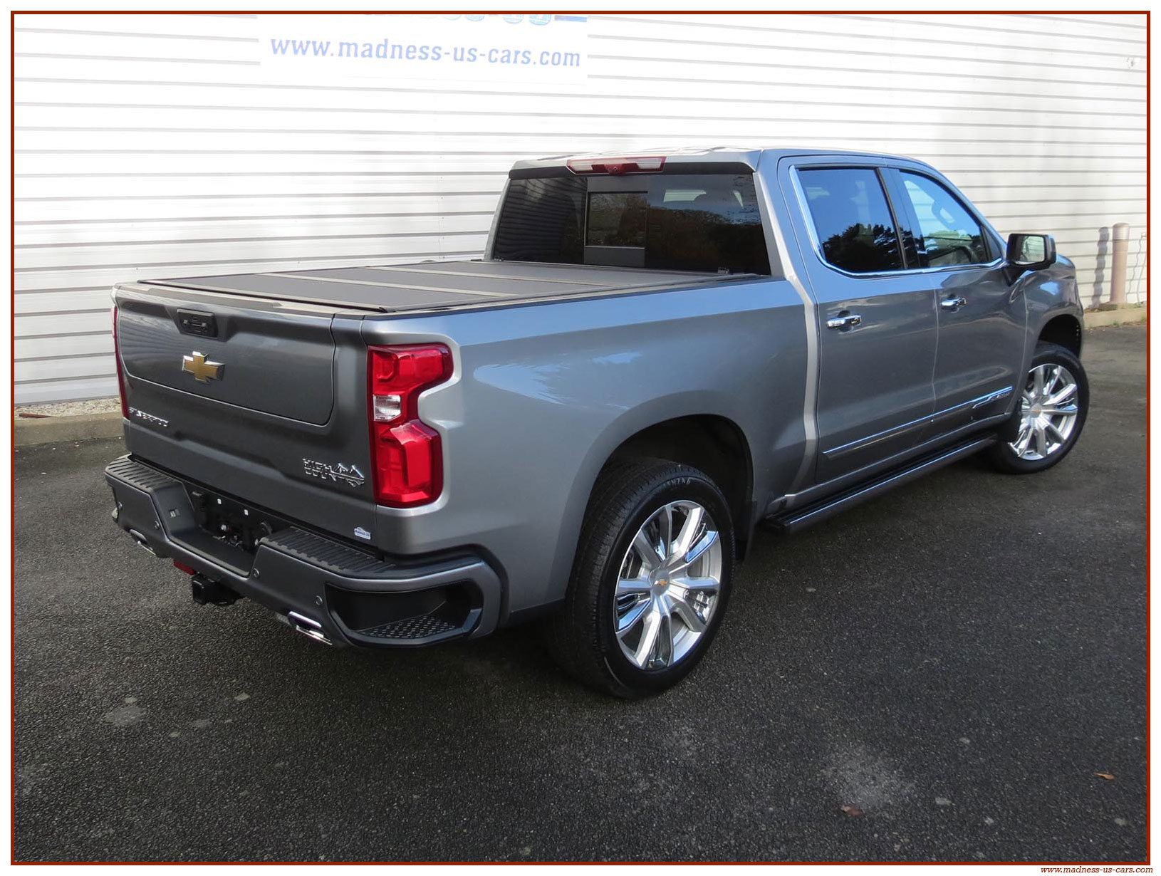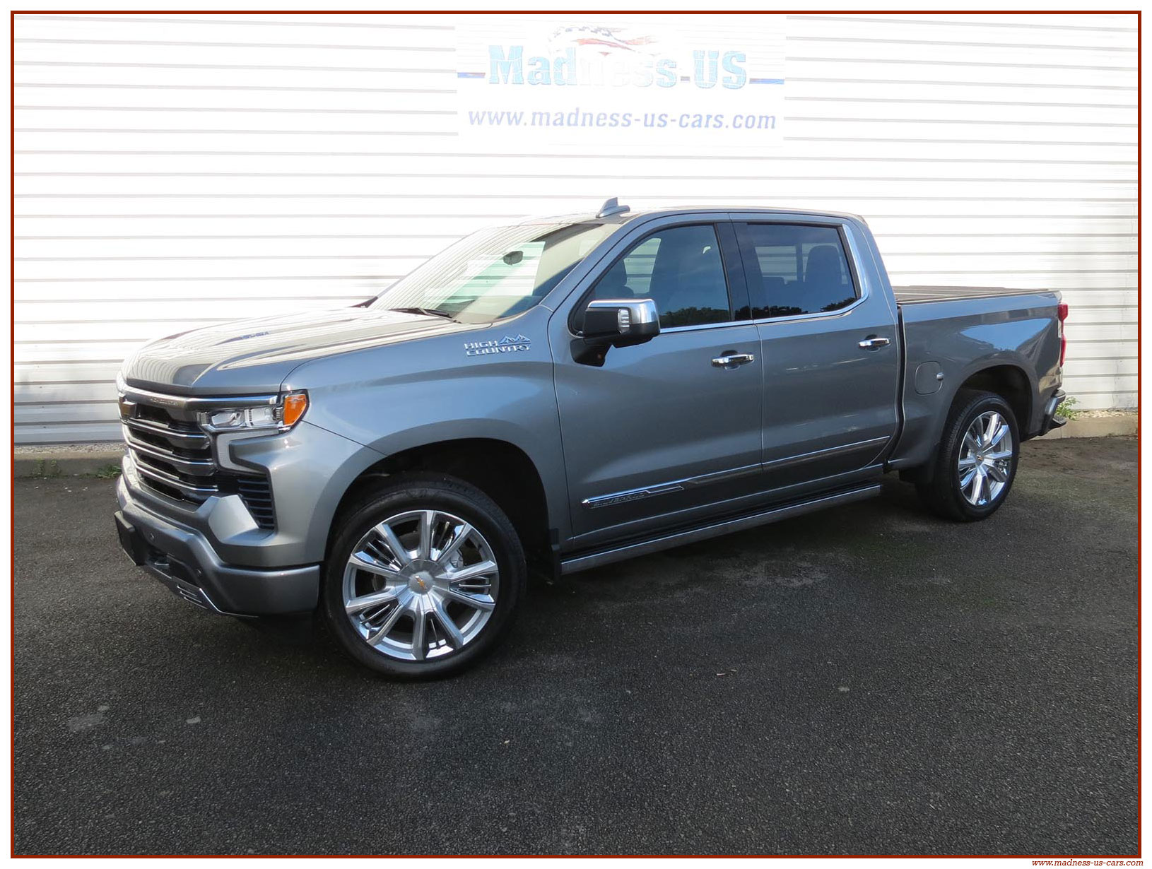 Le Chevrolet Silverado High Country propose un équipement haut de gamme et moderne : Système multimedia Bose, Bluetooth, caméra 360°, radars de stationnement, sièges électriques en cuir chauffants et climatisés, régulateur de vitesse avec anti collision, avertisseur de franchissement de lignes blanches ... Le Chevrolet Silverado High Country est disponible chez Madness US, neuf, homologué en France et garanti pendant 24 mois.