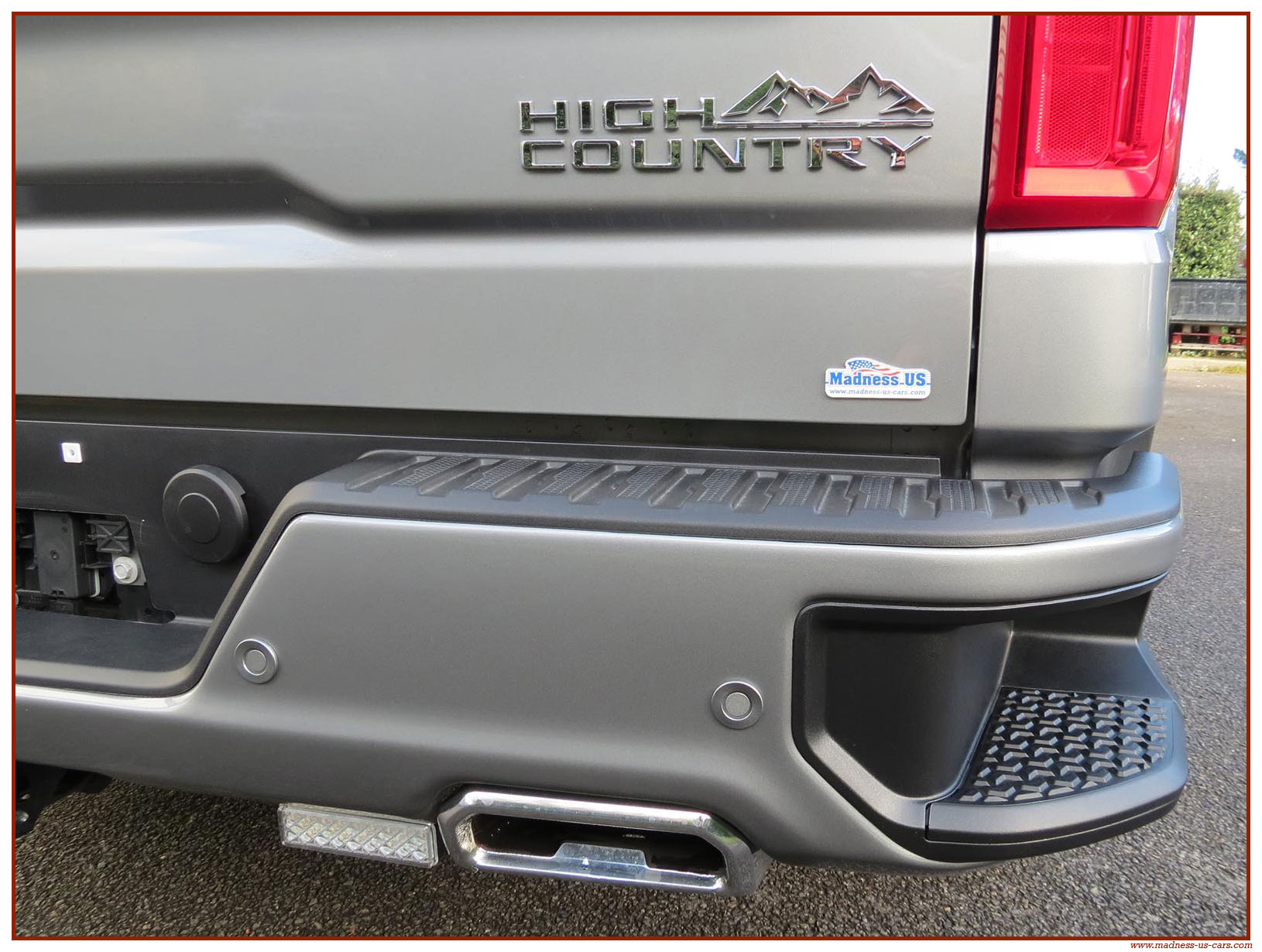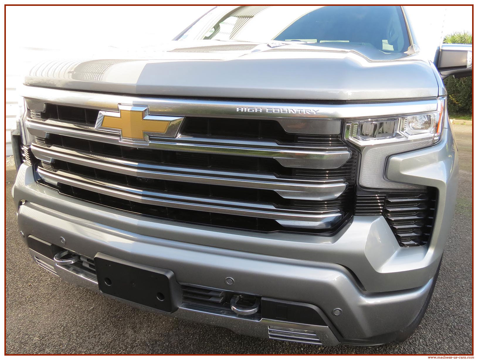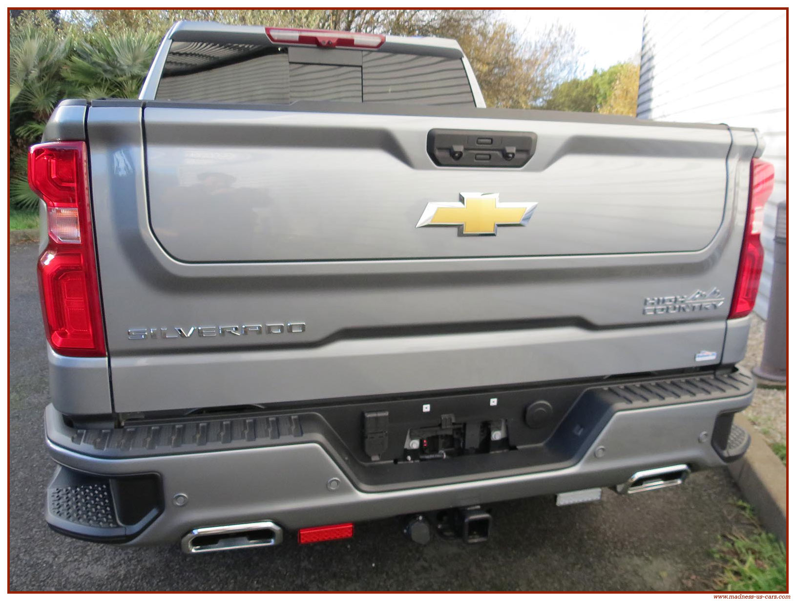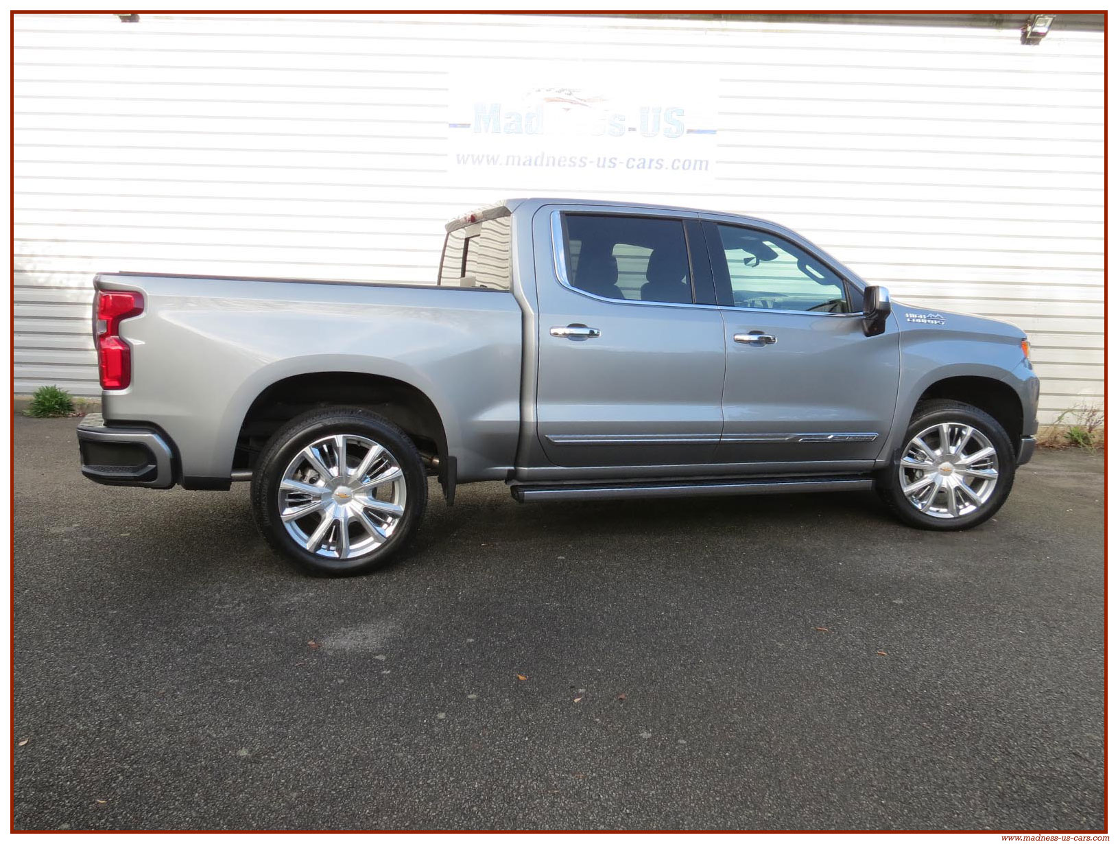Le Chevrolet Silverado High Country propose un équipement haut de gamme et moderne : Système multimedia Bose, Bluetooth, caméra 360°, radars de stationnement, sièges électriques en cuir chauffants et climatisés, régulateur de vitesse avec anti collision, avertisseur de franchissement de lignes blanches ... Le Chevrolet Silverado High Country est disponible chez Madness US, neuf, homologué en France et garanti pendant 24 mois.