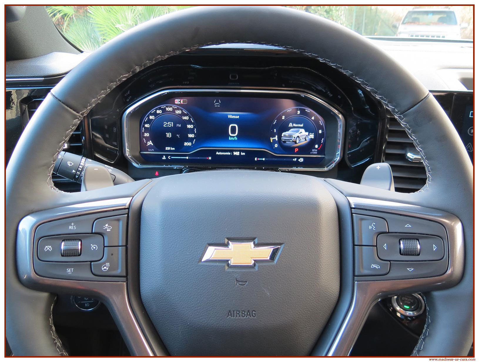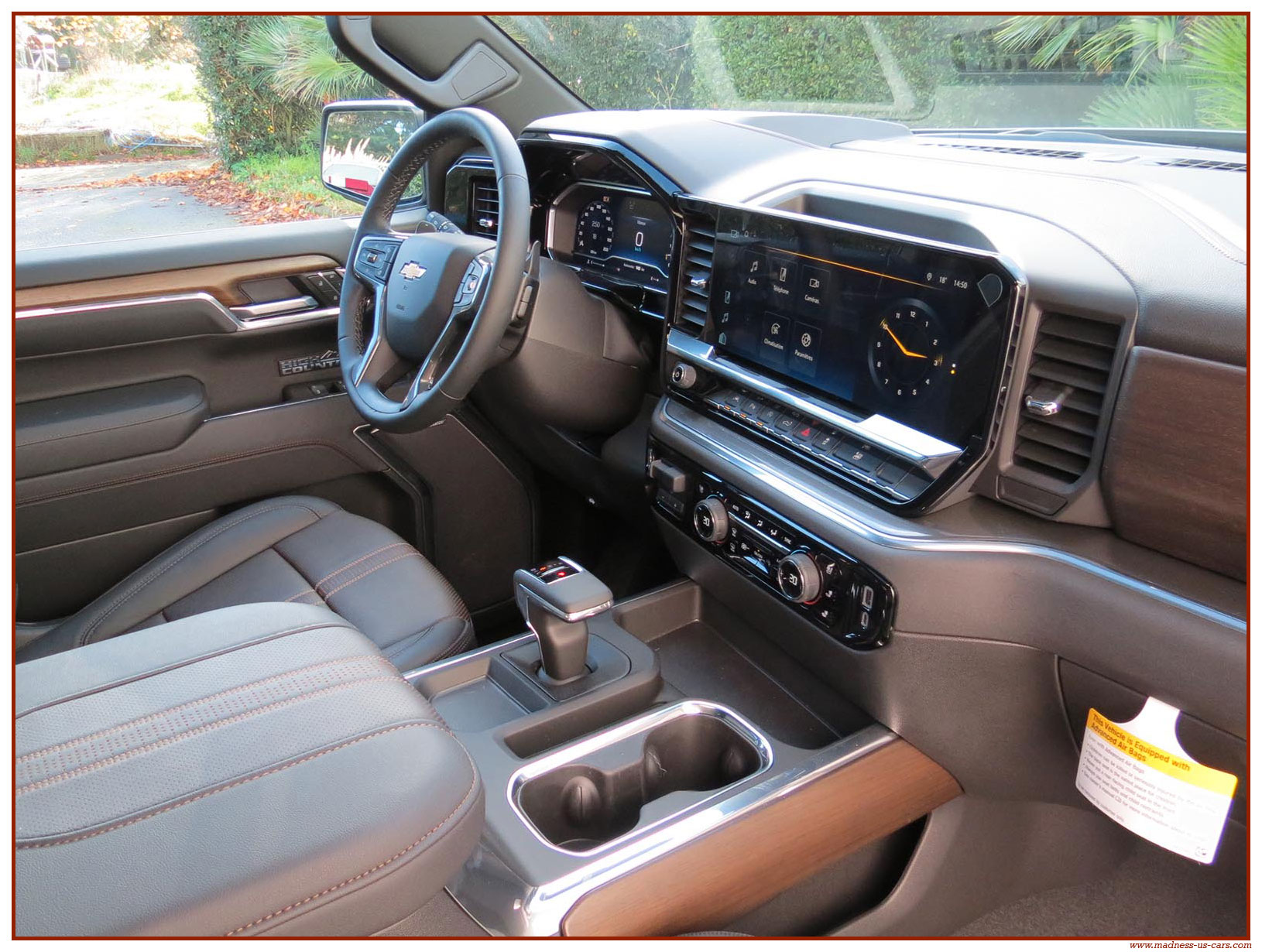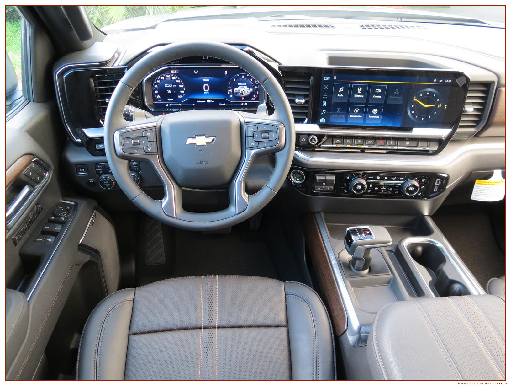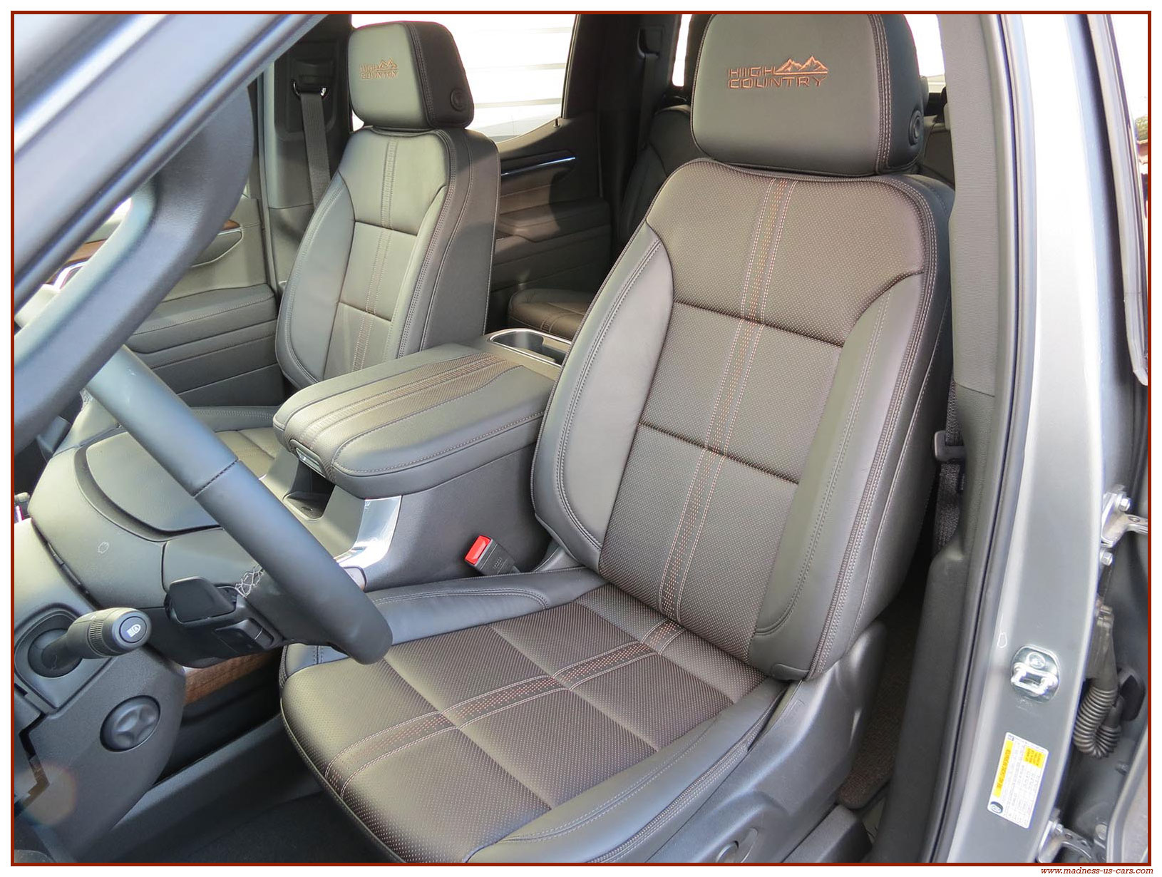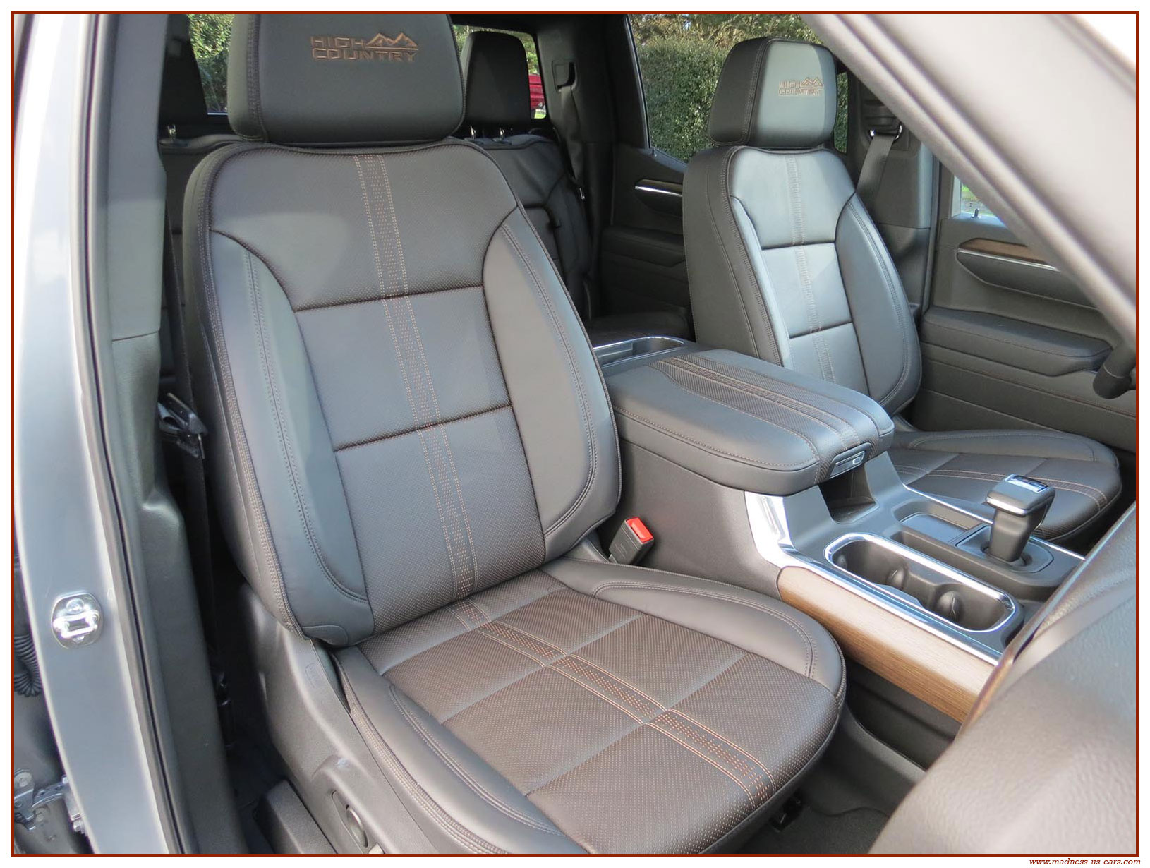 Le Chevrolet Silverado High Country propose un équipement haut de gamme et moderne : Système multimedia Bose, Bluetooth, caméra 360°, radars de stationnement, sièges électriques en cuir chauffants et climatisés, régulateur de vitesse avec anti collision, avertisseur de franchissement de lignes blanches ... Le Chevrolet Silverado High Country est disponible chez Madness US, neuf, homologué en France et garanti pendant 24 mois.
