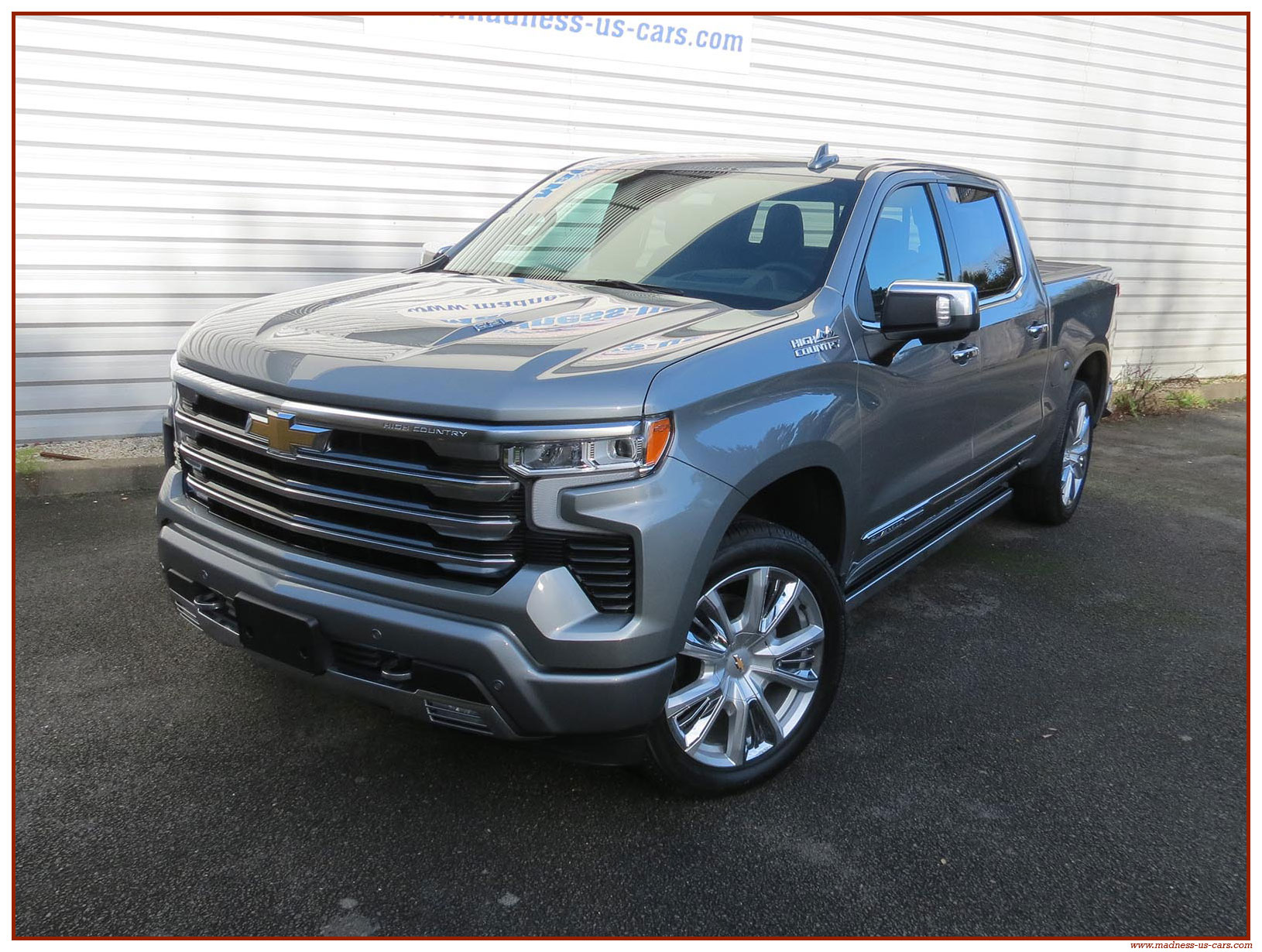Madness US vous propose ce pickup Chevrolet Silverado 1500 modèle 2025 dans la finition haut de gamme High Country. Ce Chevrolet est équipé du moteur V8 Ecotec de 6,2 litres de cylindrée développant la puissance de 420 chevaux pour un couple de 624 Nm. Ce moteur V8 est associé à une boite de vitesse automatique à 10 rapports.