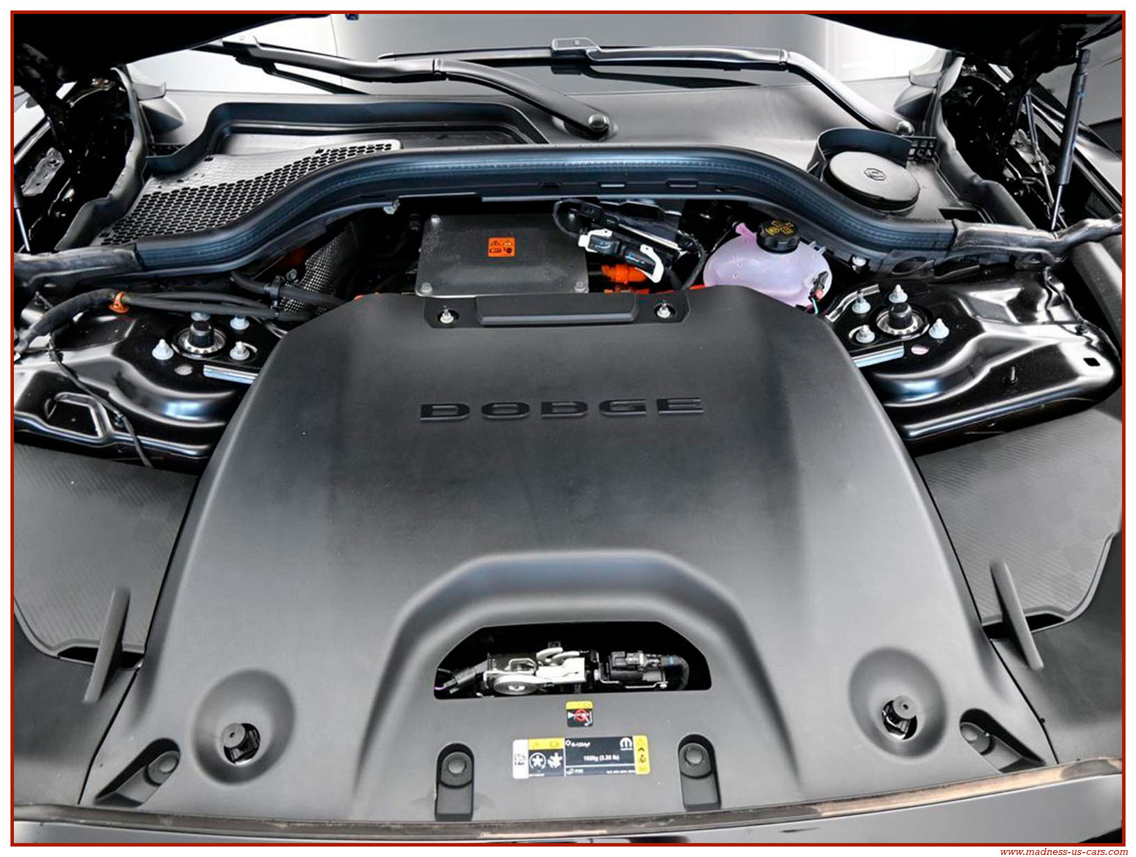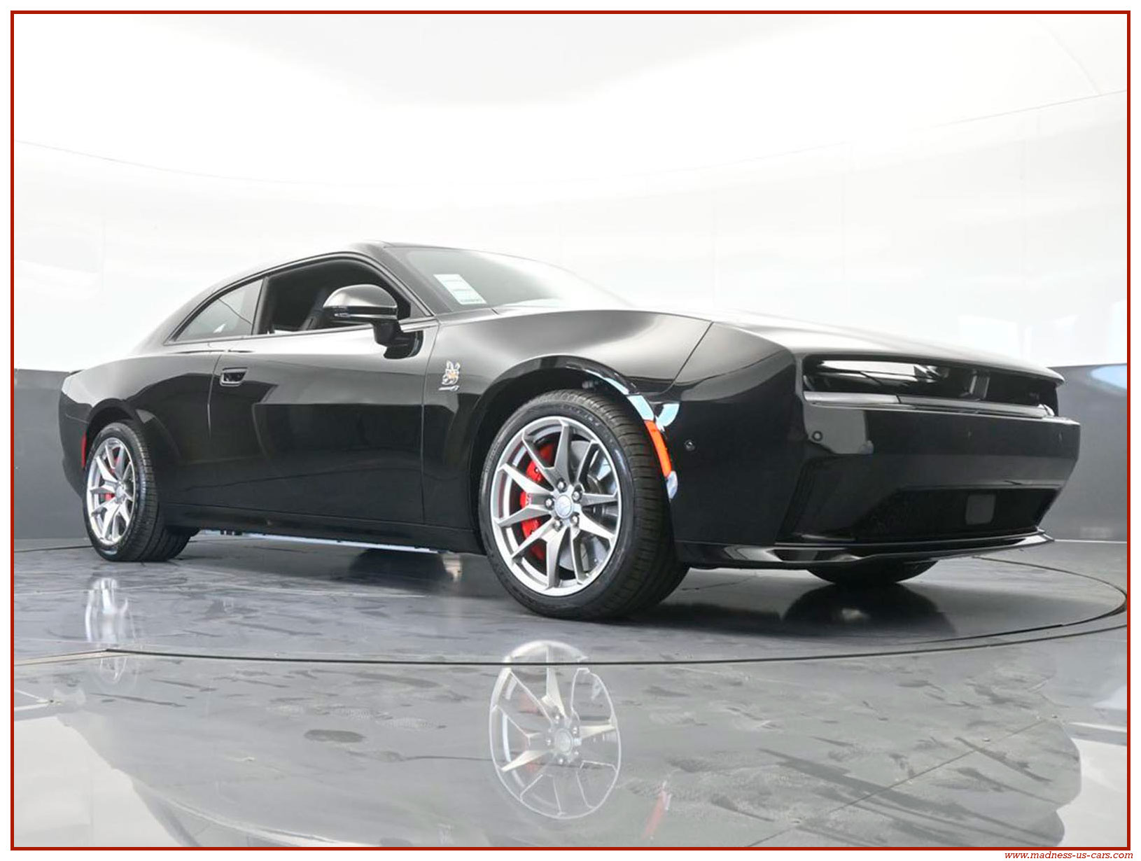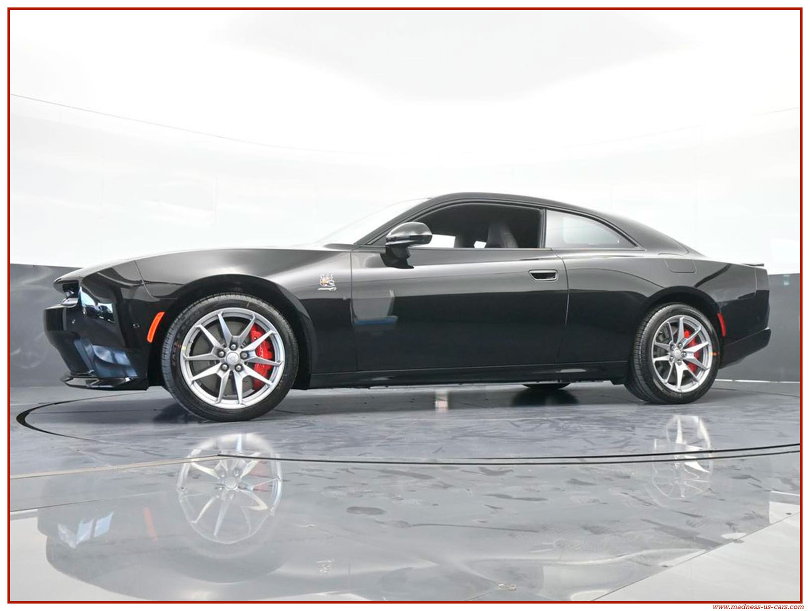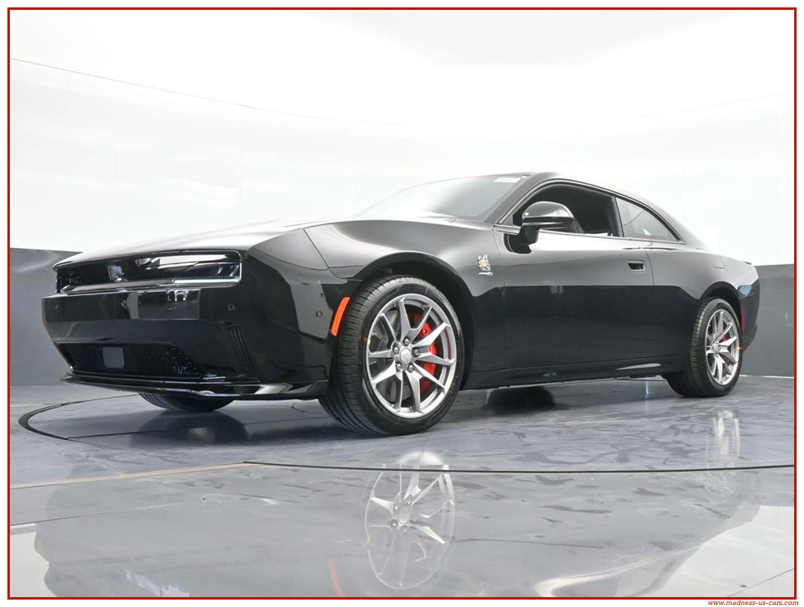 Cette nouvelle Dodge Charger électrique est une version Daytona Stage 2 avec la plus importante motorisation possible. Elle est proposée par Madness US avec un excellent niveau d'équipement : Auditorium Alpine 914 watts avec 10 enceintes, écran central 12,3 pouces avec navigation GPS, écran conducteur 16 pouces, caméra de recul, feux à leds, sellerie en cuir alcantara avec sièges chauffants et climatisés, jantes aluminium 20 pouces, freinage Brembo gros diamètre, toit vitré panoramique ... Rappelons aussi que la Charger EV propose un système de bruiteur, ce système s'appelle Fratzonic Chambered Exhaust.
