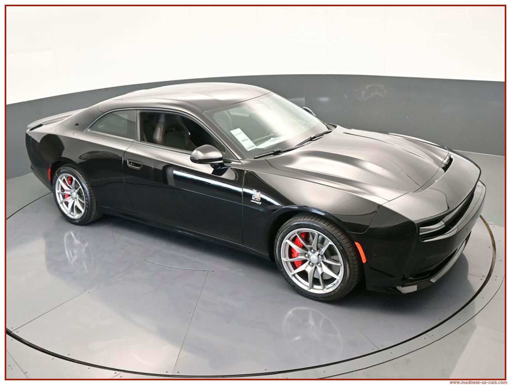 Madness US vous propose dés à présent le tout premier Muscle Car 100% électrique : La Dodge Charger Daytona Scat Pack 2026. Cette Charger Daytona EV est équipé de deux moteurs électriques de 400 volts, un sur chaque essieu, ce qui en fait une transmission intégrale. Cette Charger développe la puissance de 670 chevaux pour un couple de 850 Nm ! Ces moteurs électriques sont alimentés par une batterie Lithium Ion NCA de 100,5 kW. L'autonomie annoncée est de 418 kilomètres.
