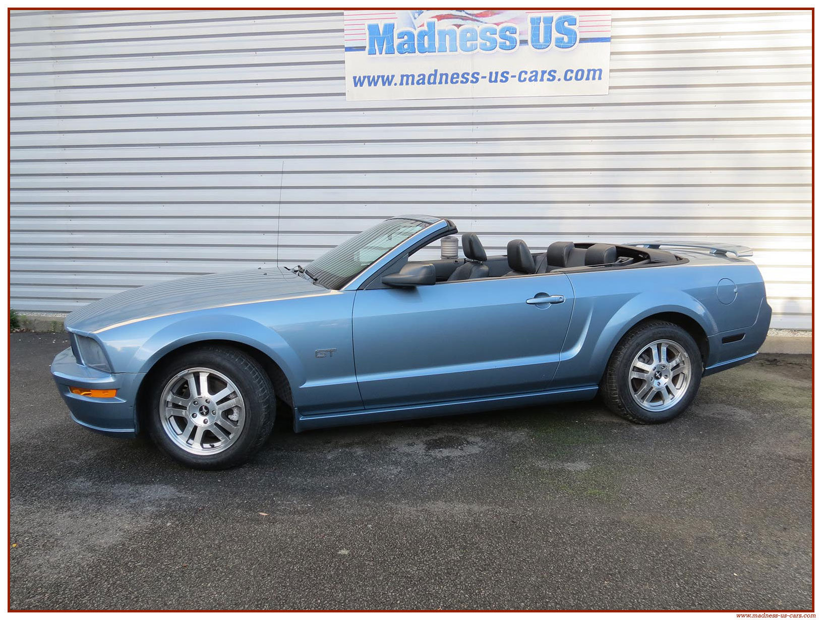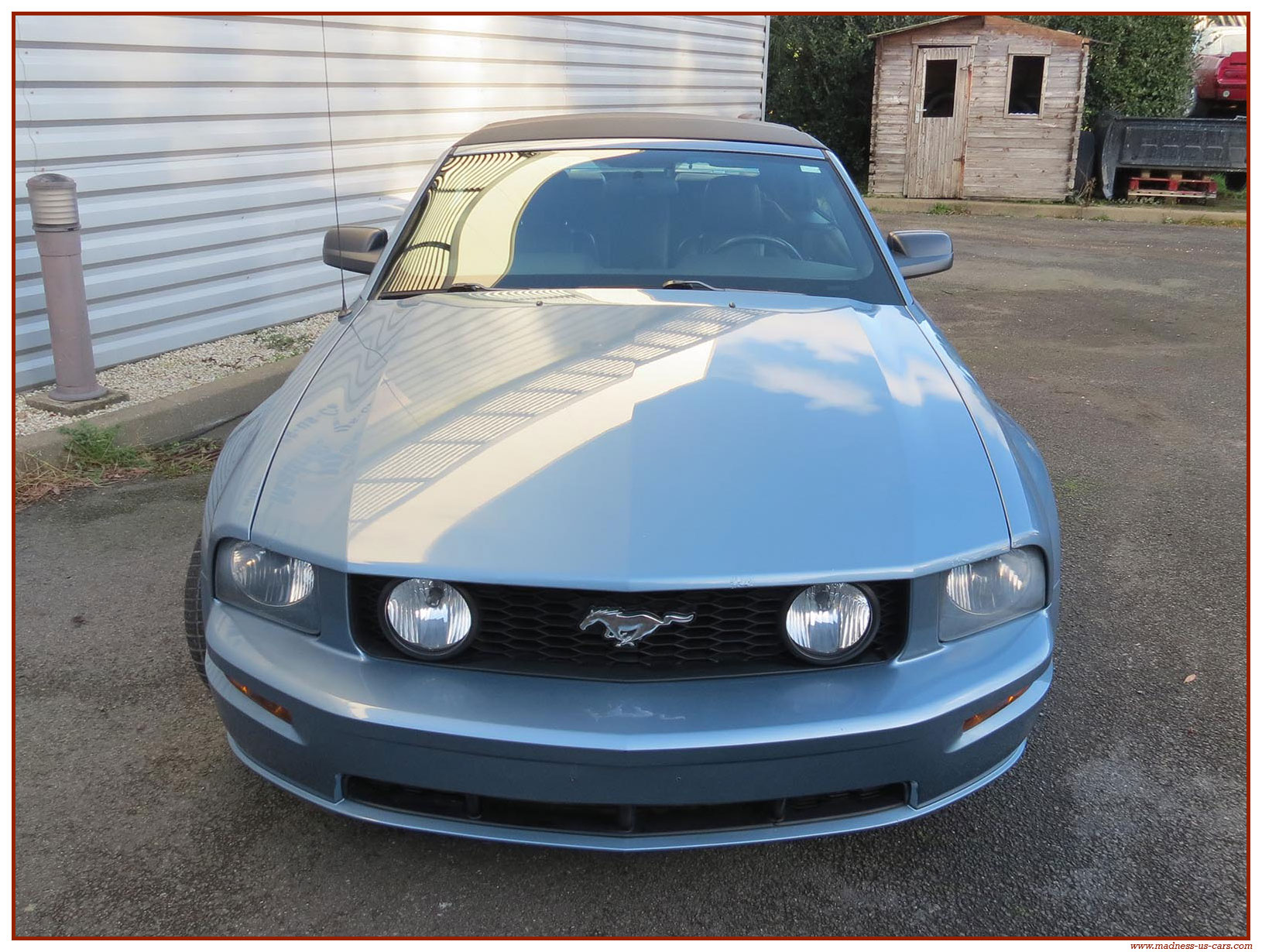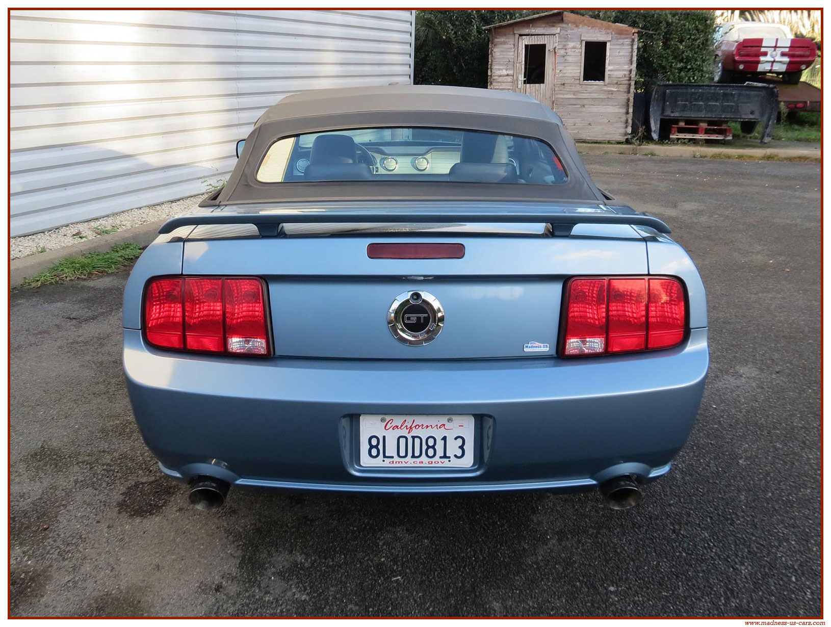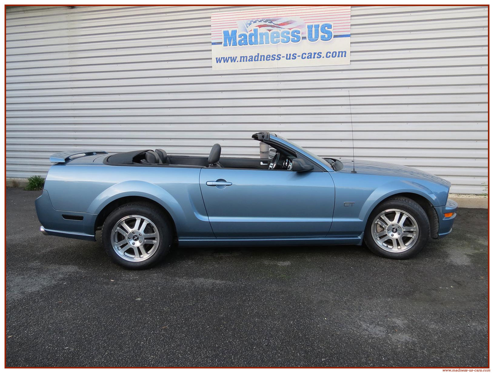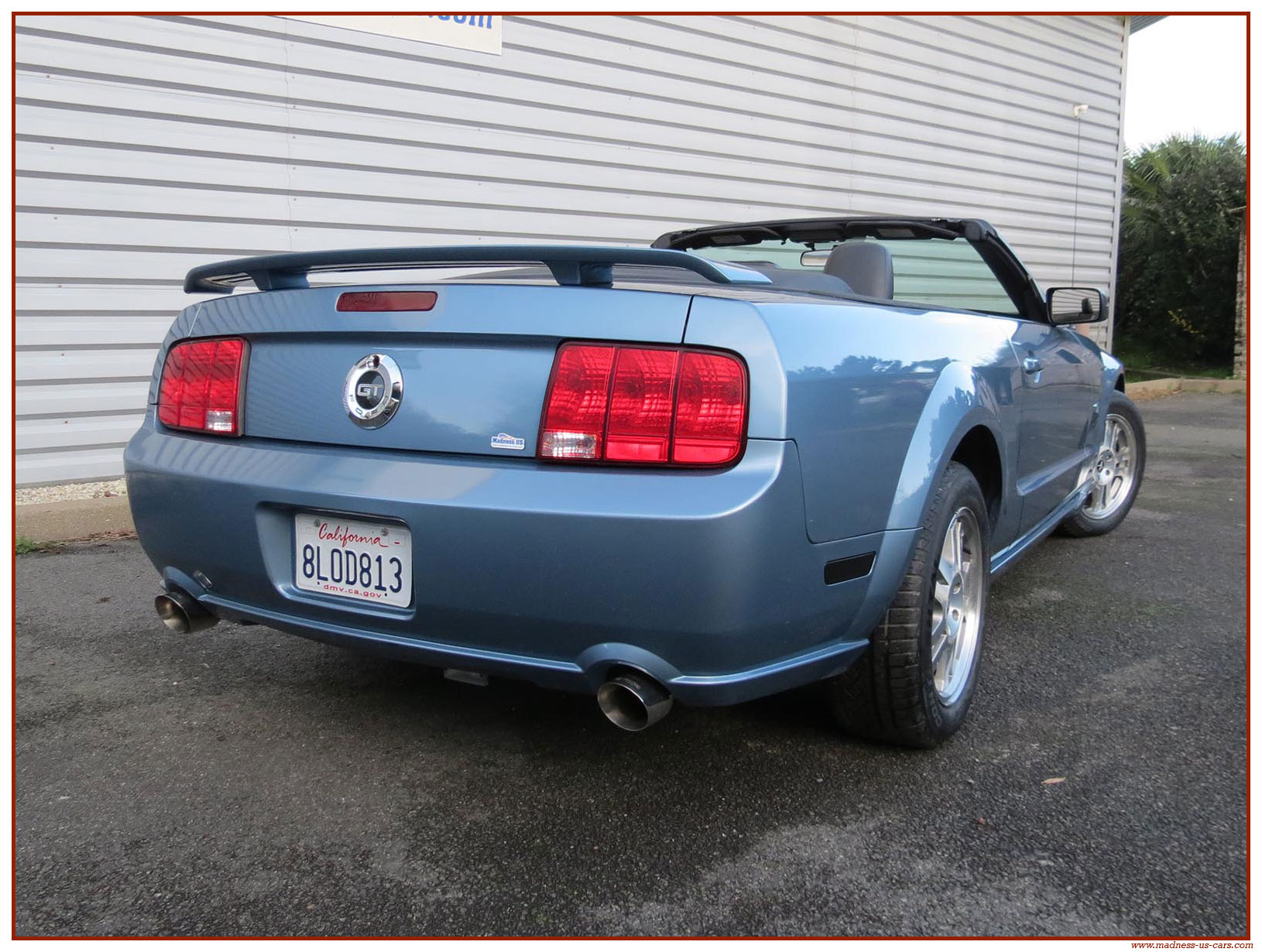 Cette Ford Mustang GT Cabriolet est équipée de jantes aluminium en 17 pouces et d'un échappement sport MBRP. Cette Ford Mustang est vendue par Madness US avec l'homologation Française, en tant que modèle de l'année 2005, elle n'est pas soumise au malus écologique et bénéficie d'une carte grise à moitié prix.