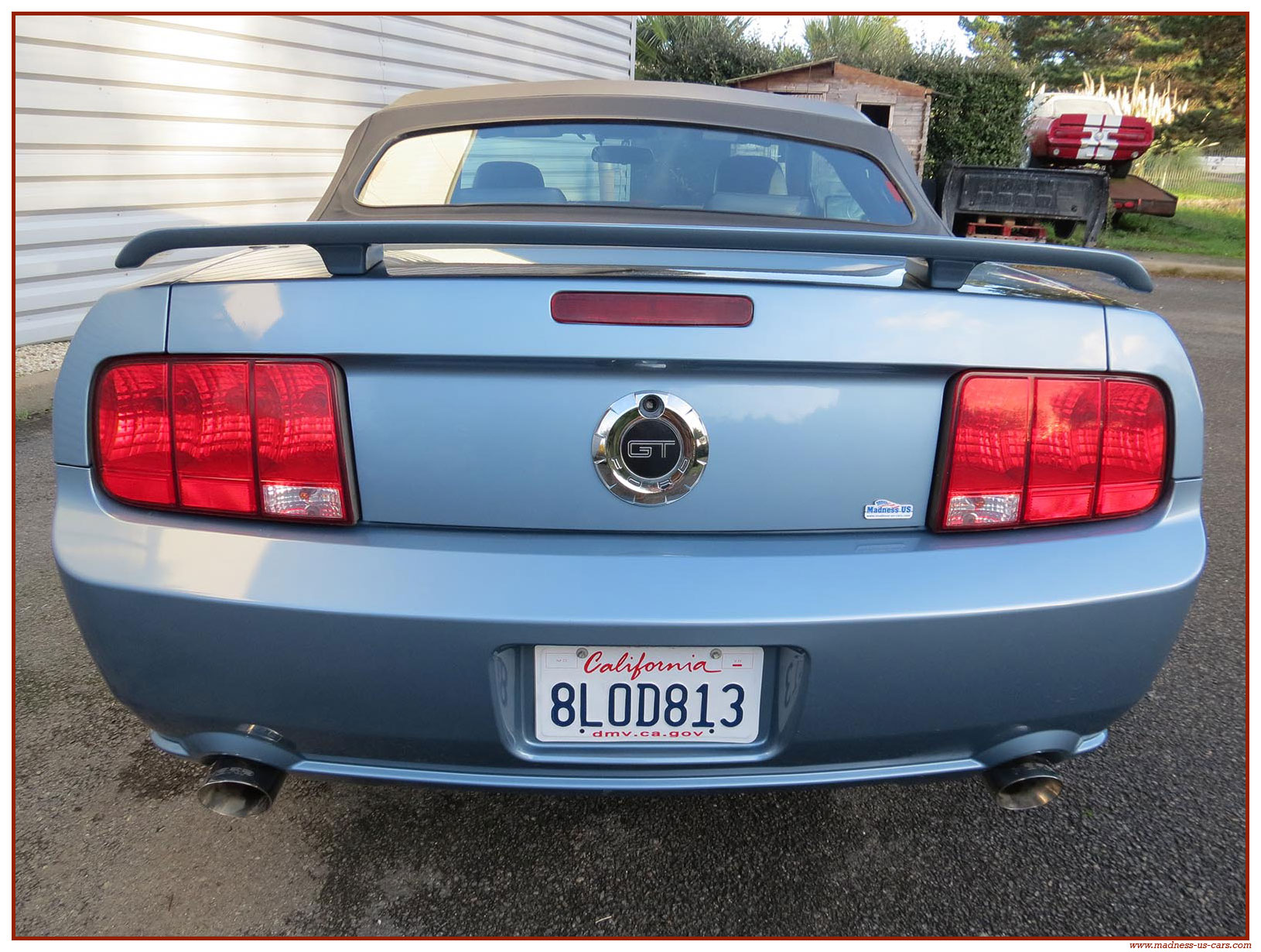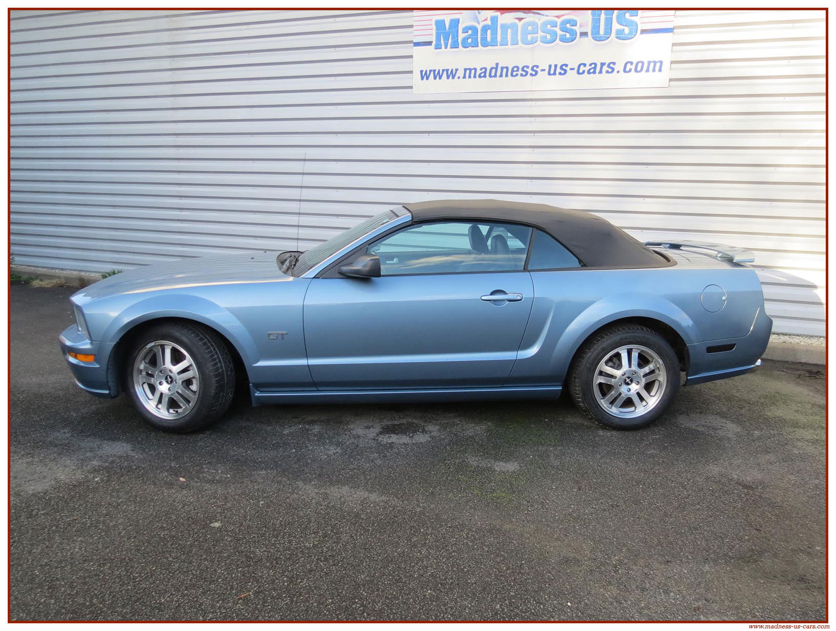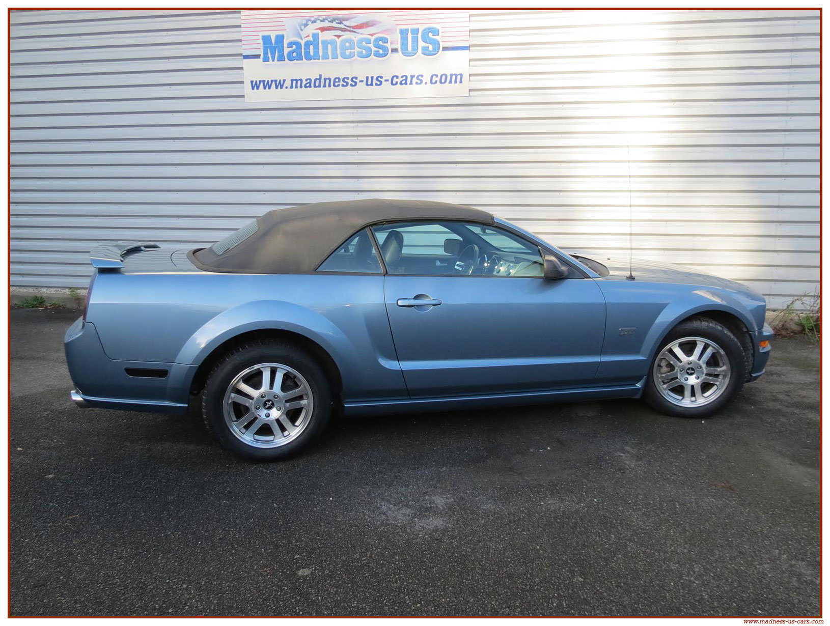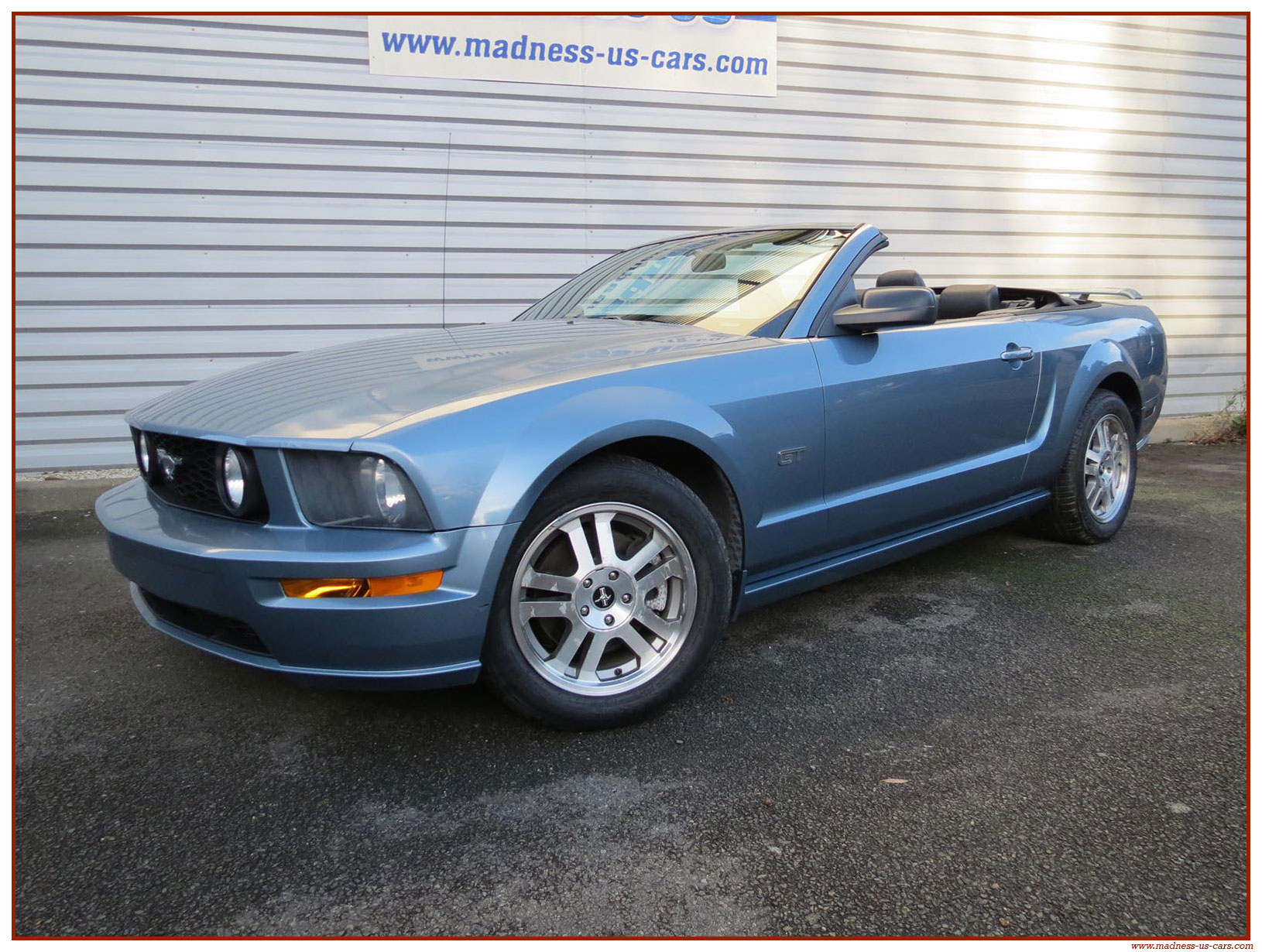 Cette Ford Mustang GT Cabriolet est équipée de jantes aluminium en 17 pouces et d'un échappement sport MBRP. Cette Ford Mustang est vendue par Madness US avec l'homologation Française, en tant que modèle de l'année 2005, elle n'est pas soumise au malus écologique et bénéficie d'une carte grise à moitié prix.