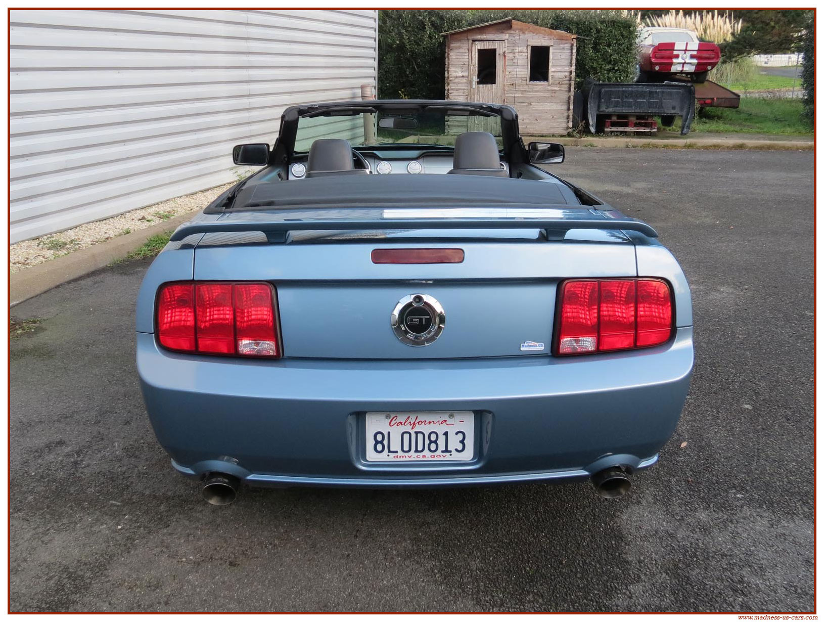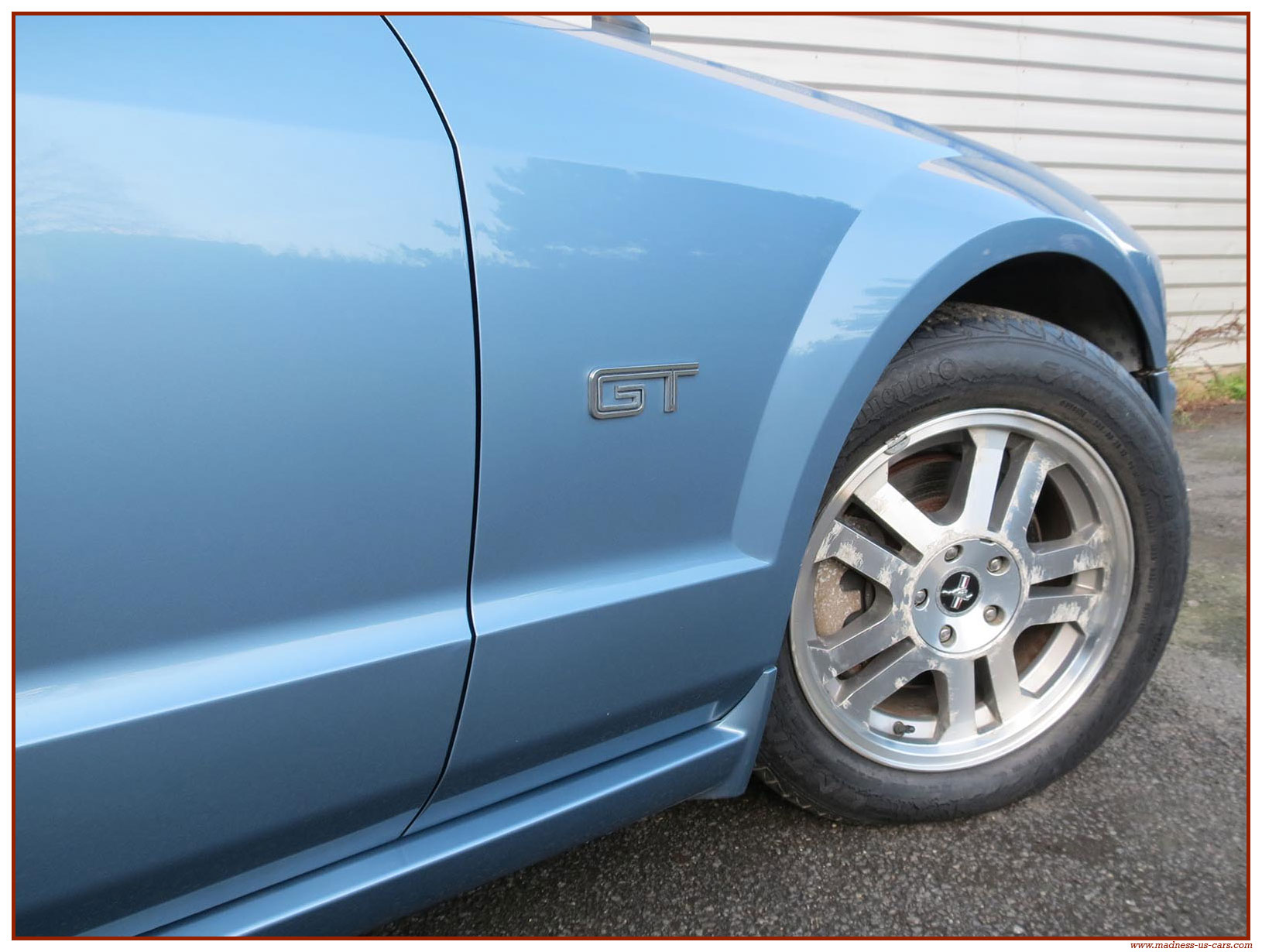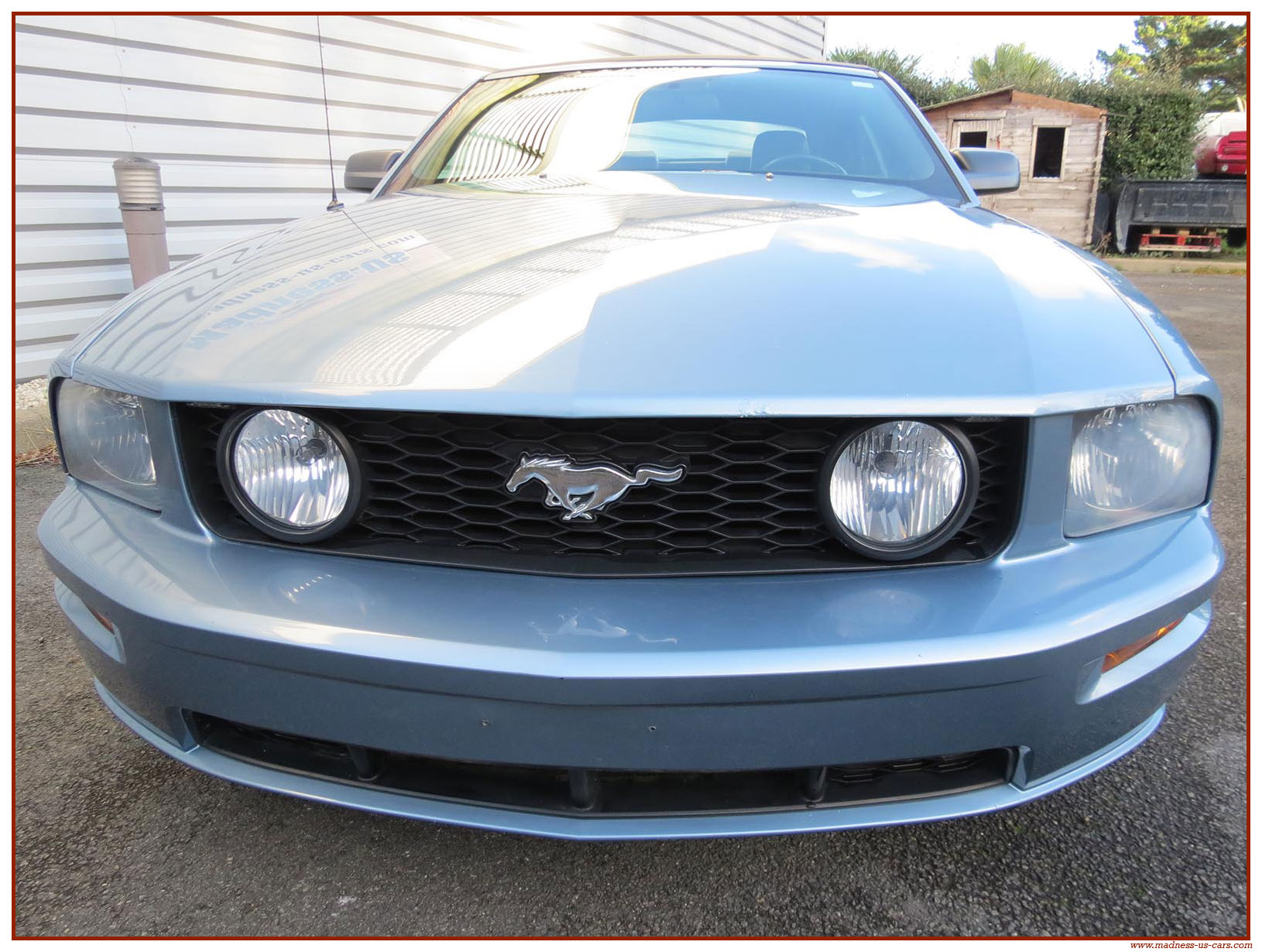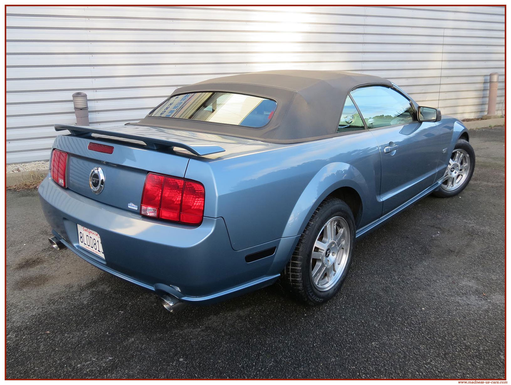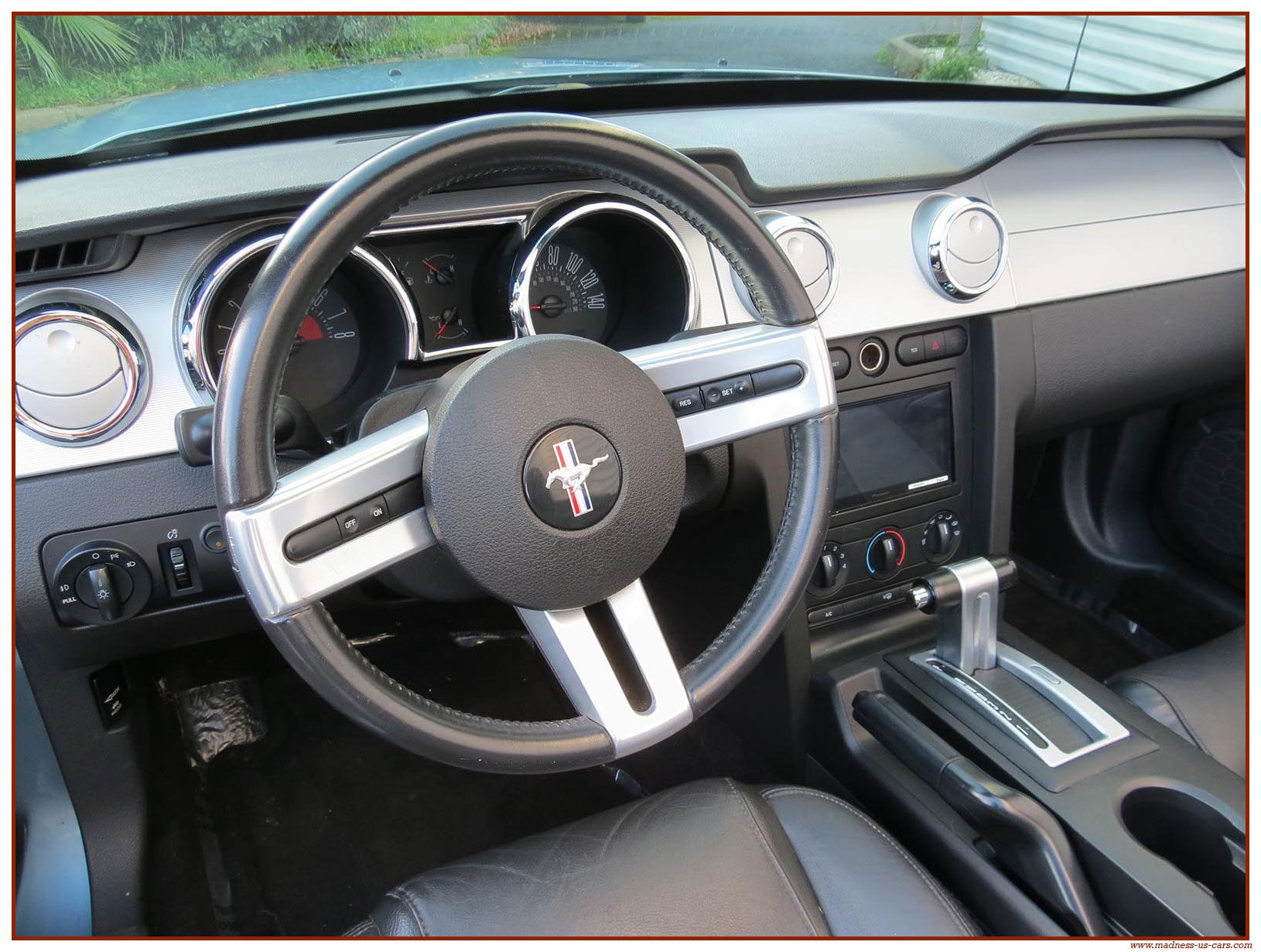 Cette Ford Mustang GT Cabriolet est équipée de jantes aluminium en 17 pouces et d'un échappement sport MBRP. Cette Ford Mustang est vendue par Madness US avec l'homologation Française, en tant que modèle de l'année 2005, elle n'est pas soumise au malus écologique et bénéficie d'une carte grise à moitié prix.