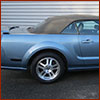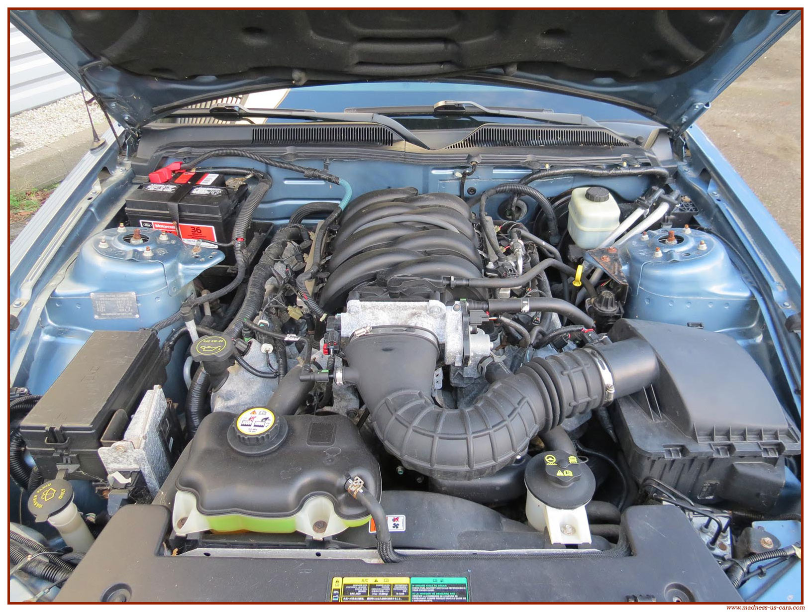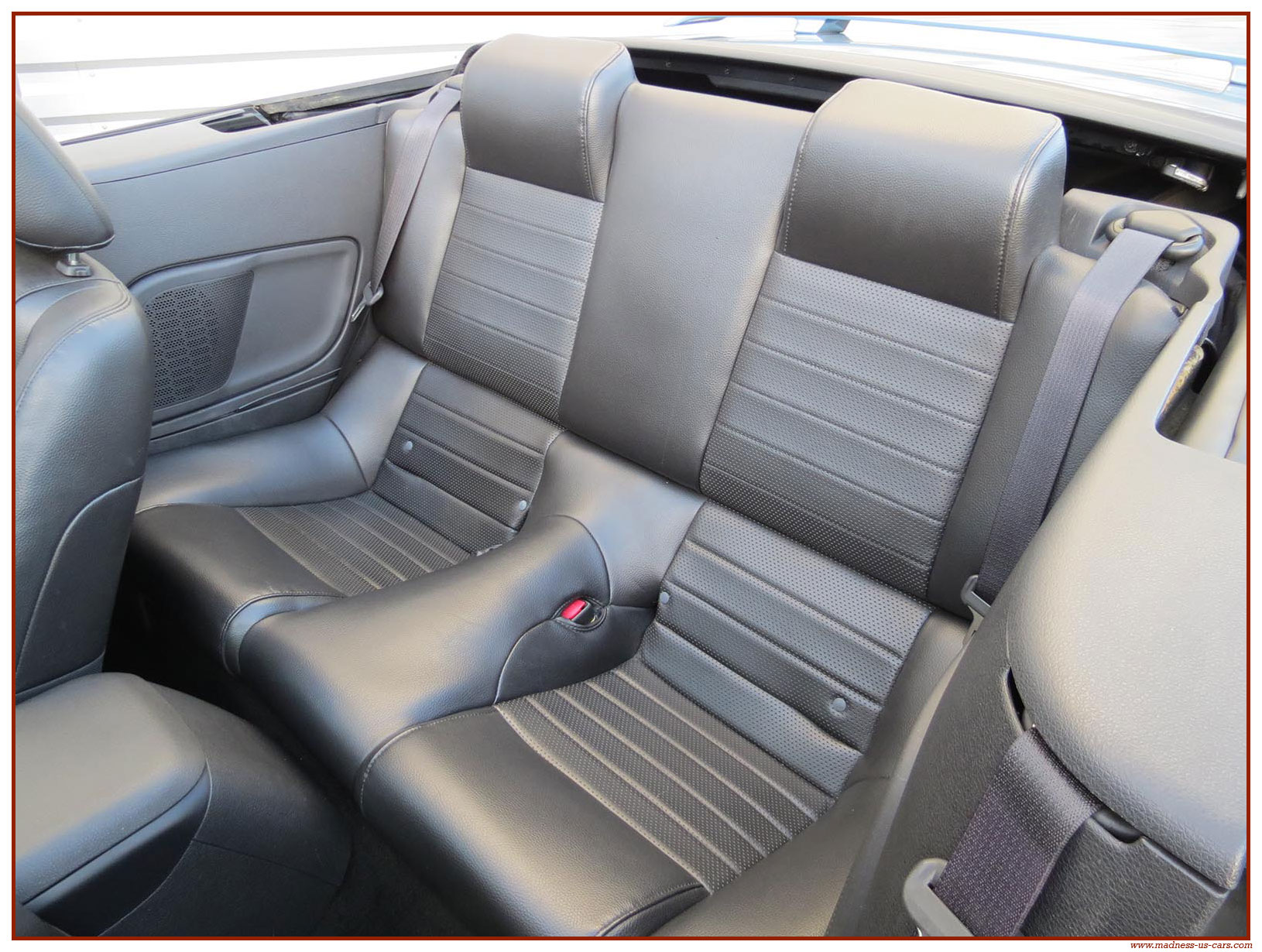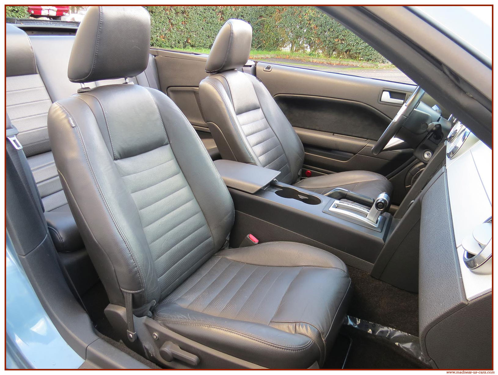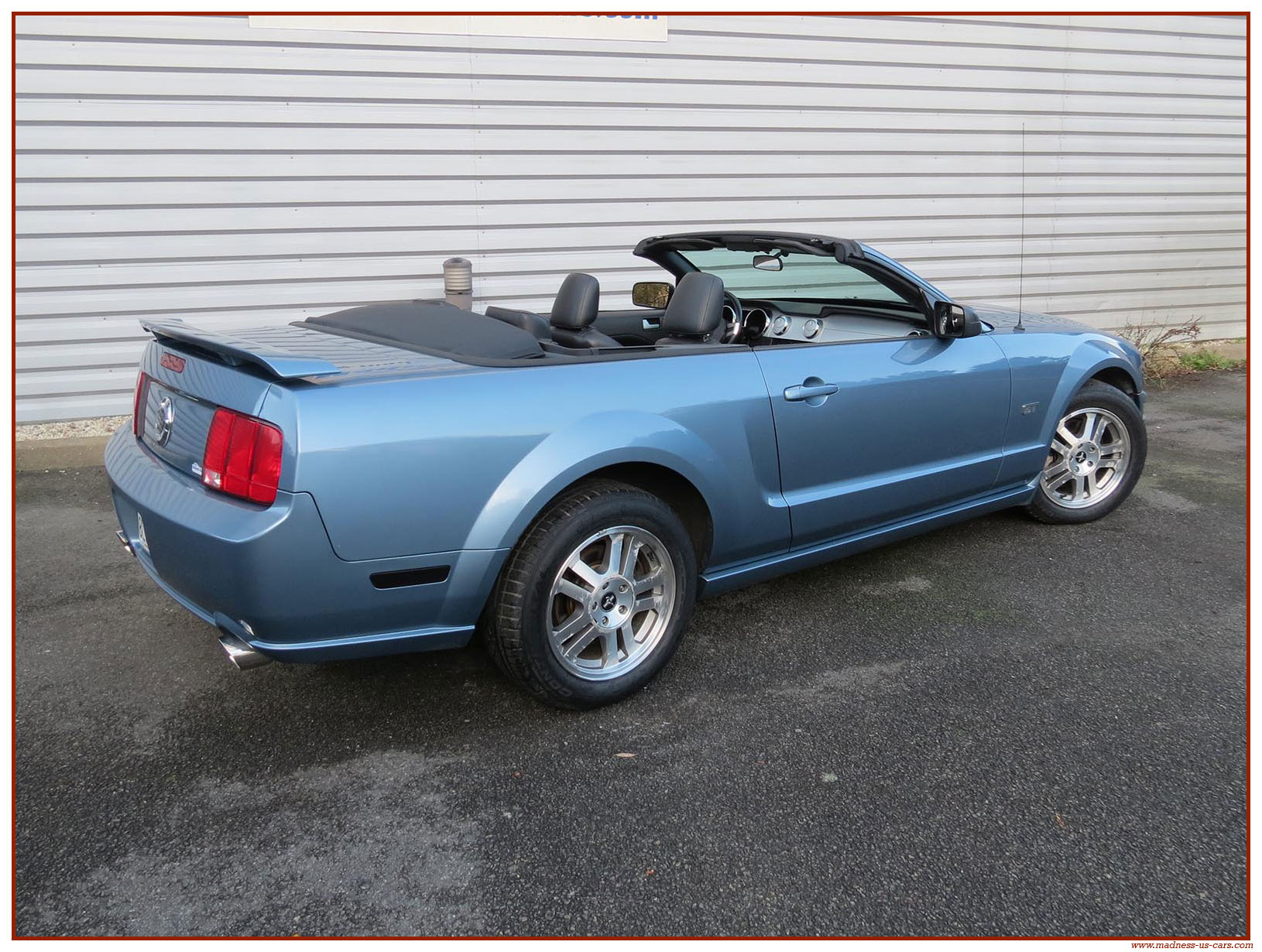 Cette Ford Mustang GT Cabriolet est équipée de jantes aluminium en 17 pouces et d'un échappement sport MBRP. Cette Ford Mustang est vendue par Madness US avec l'homologation Française, en tant que modèle de l'année 2005, elle n'est pas soumise au malus écologique et bénéficie d'une carte grise à moitié prix.