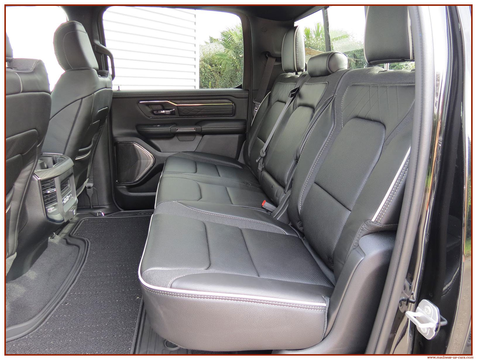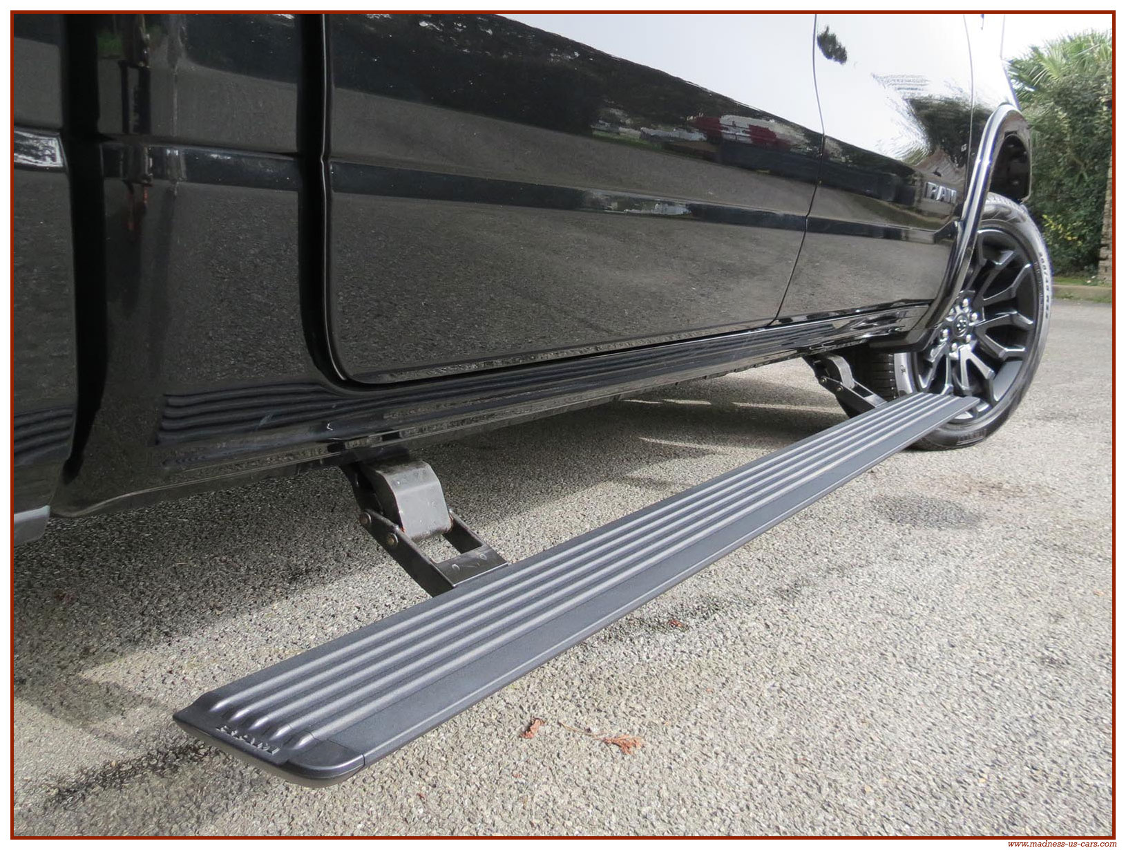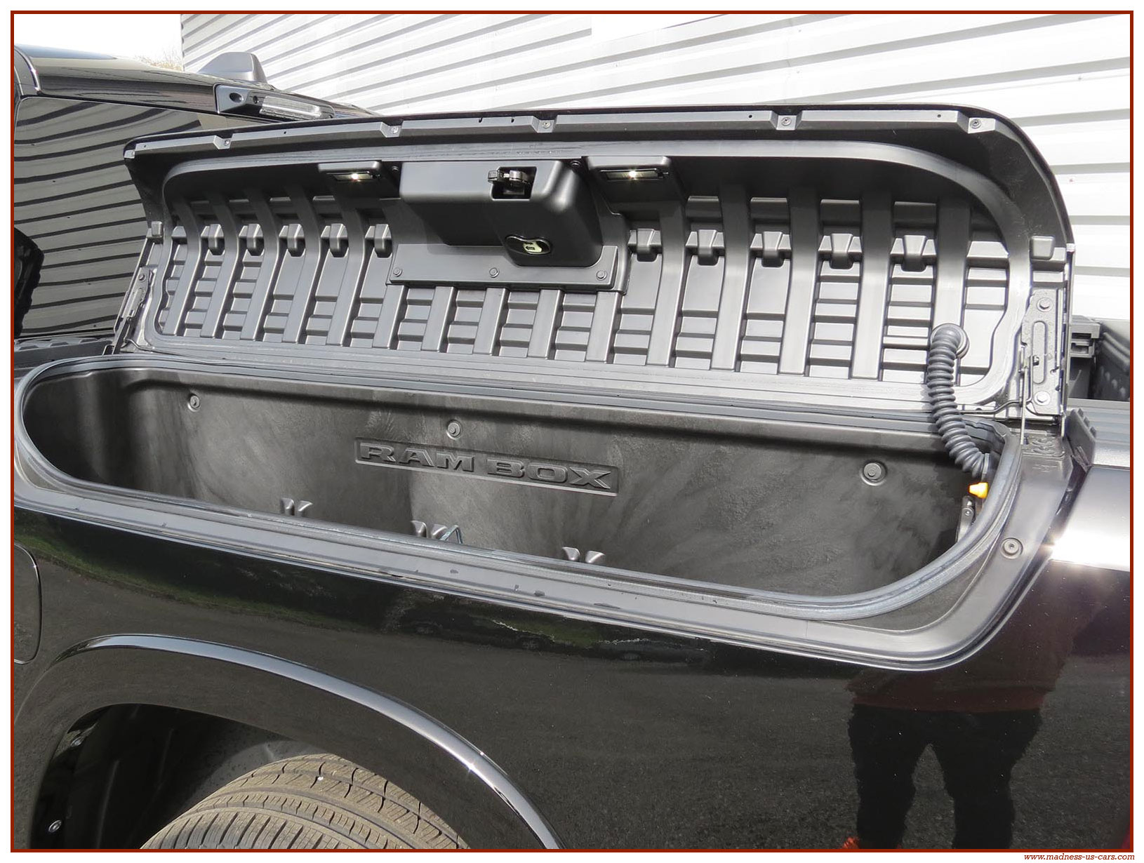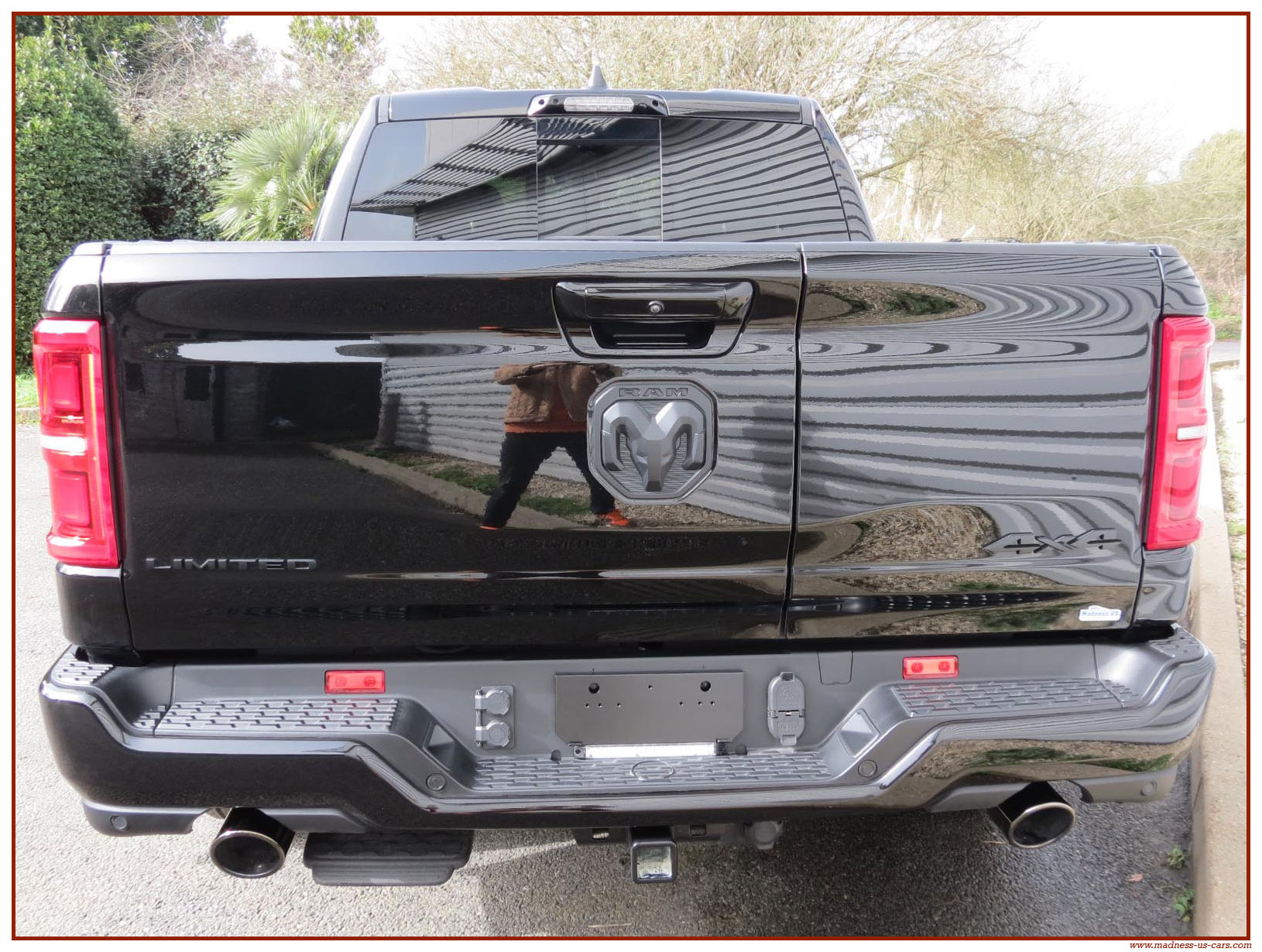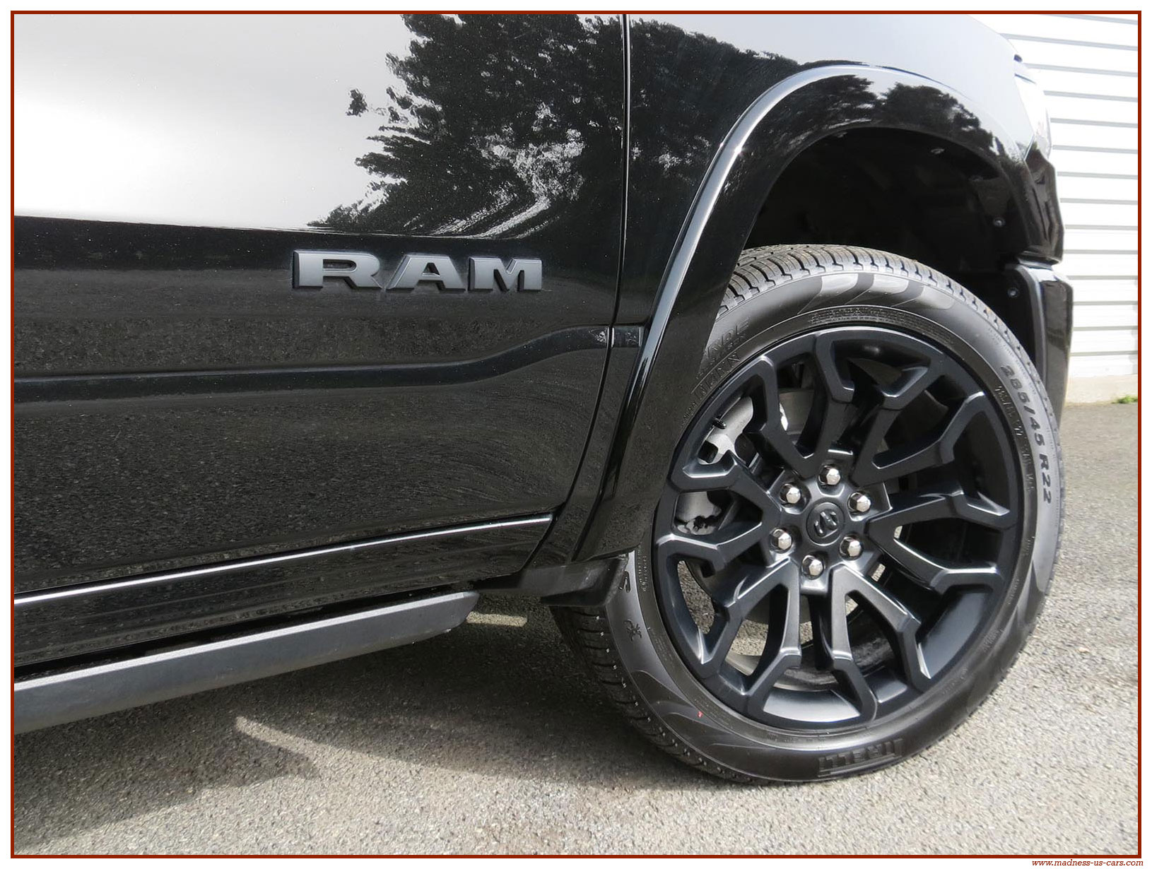 Madness US vous propose en France le nouveau Ram 1500 modèle 2025 dans la finition haut de gamme Limited avec le pack Night Edition. Ce package remplace les éléments chromés tels les jantes ou les pare chocs par des pièces de couleur noire. Ce Ram Limited 2025 Night Edition est équipé des coffres de bennes RamBox, des suspensions pneumatiques et du hayon multifonction. Le Ram 1500 Limited 2025 est équipé du nouveau moteur 6 cylindres en ligne Hurricane SST HO, ce moteur L6 Biturbo propose la puissance de 540 chevaux pour un couple de 705 Nm. Ce Ram 1500 de dernière génération, se singularise par sa montée en gamme, en effet il dispose d'équipements d'assistance à la conduite les plus modernes : Stationnement automatisé, aide au maintien dans la voie, régulateur de vitesse adaptatif avec freinage d'urgence, capteurs d'angle mort, caméra 360° ...