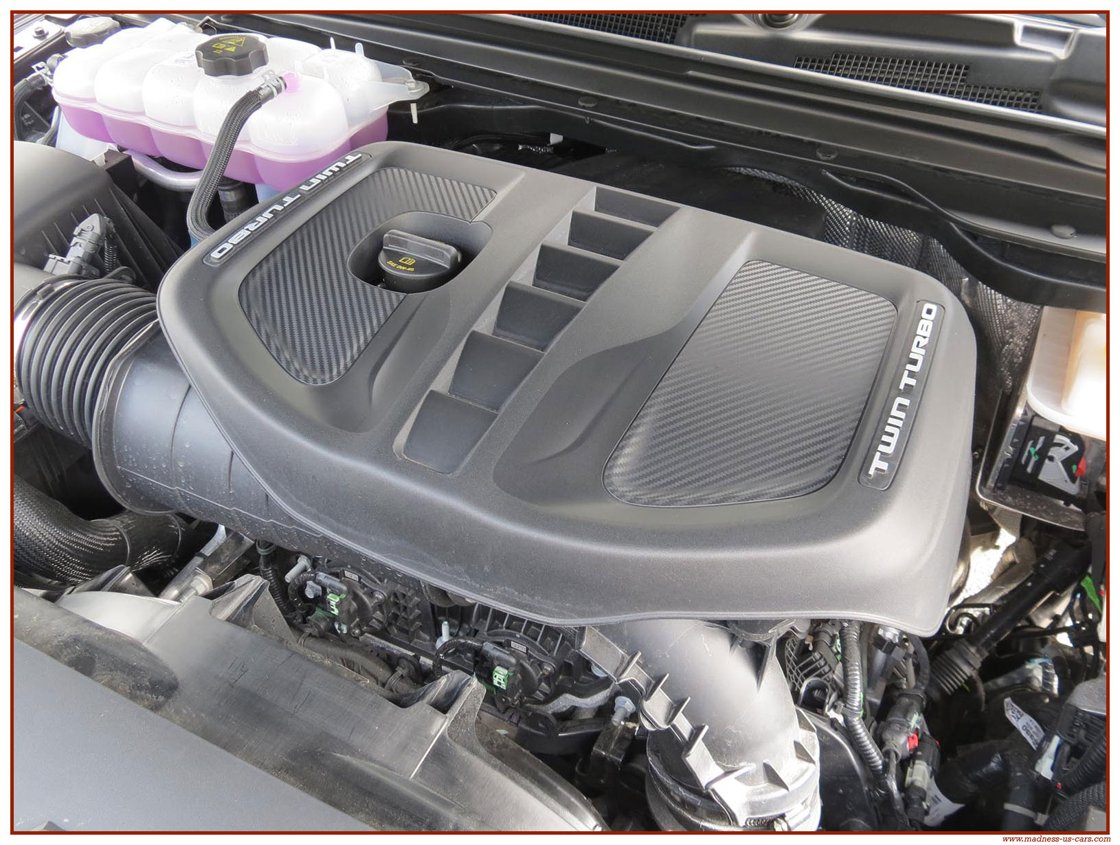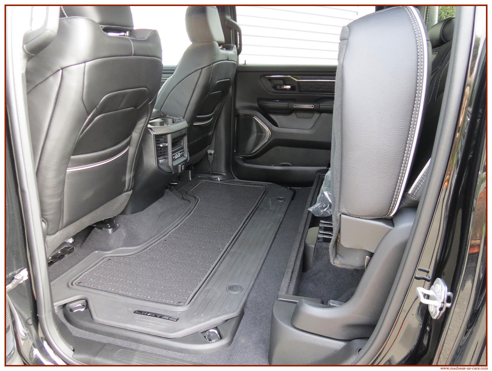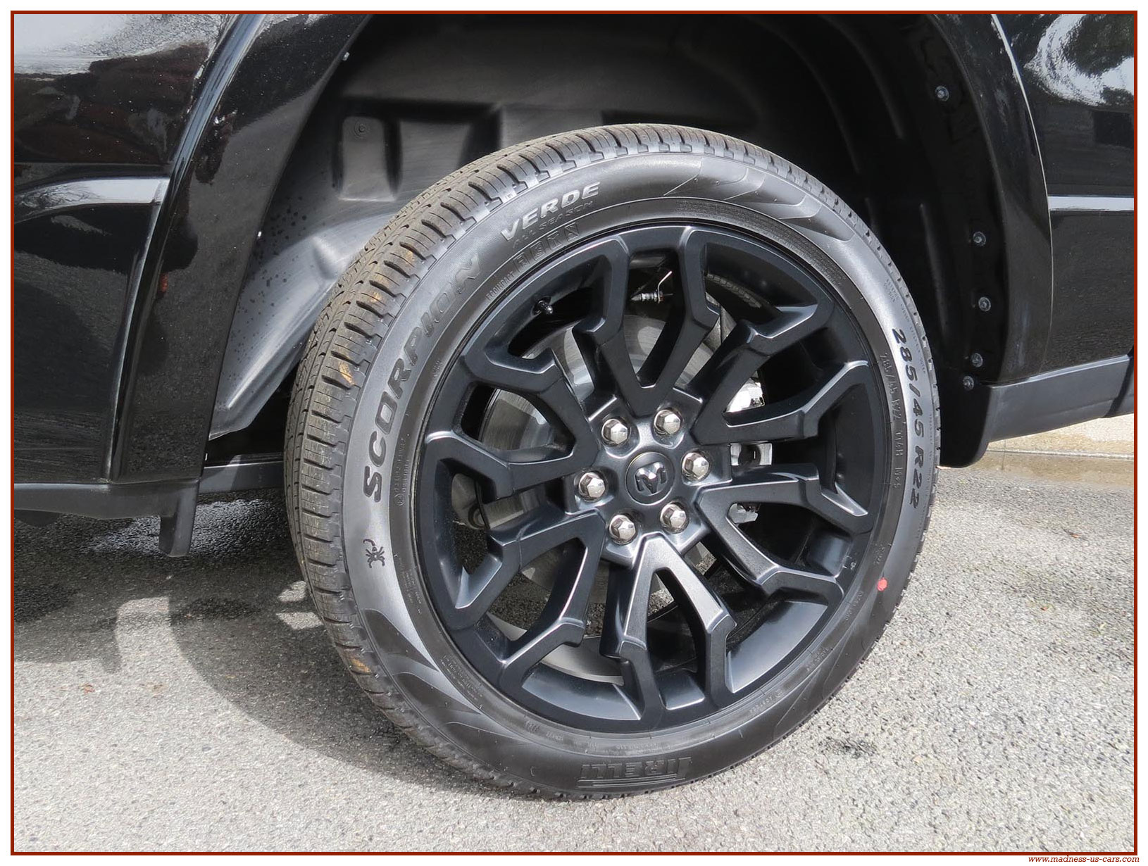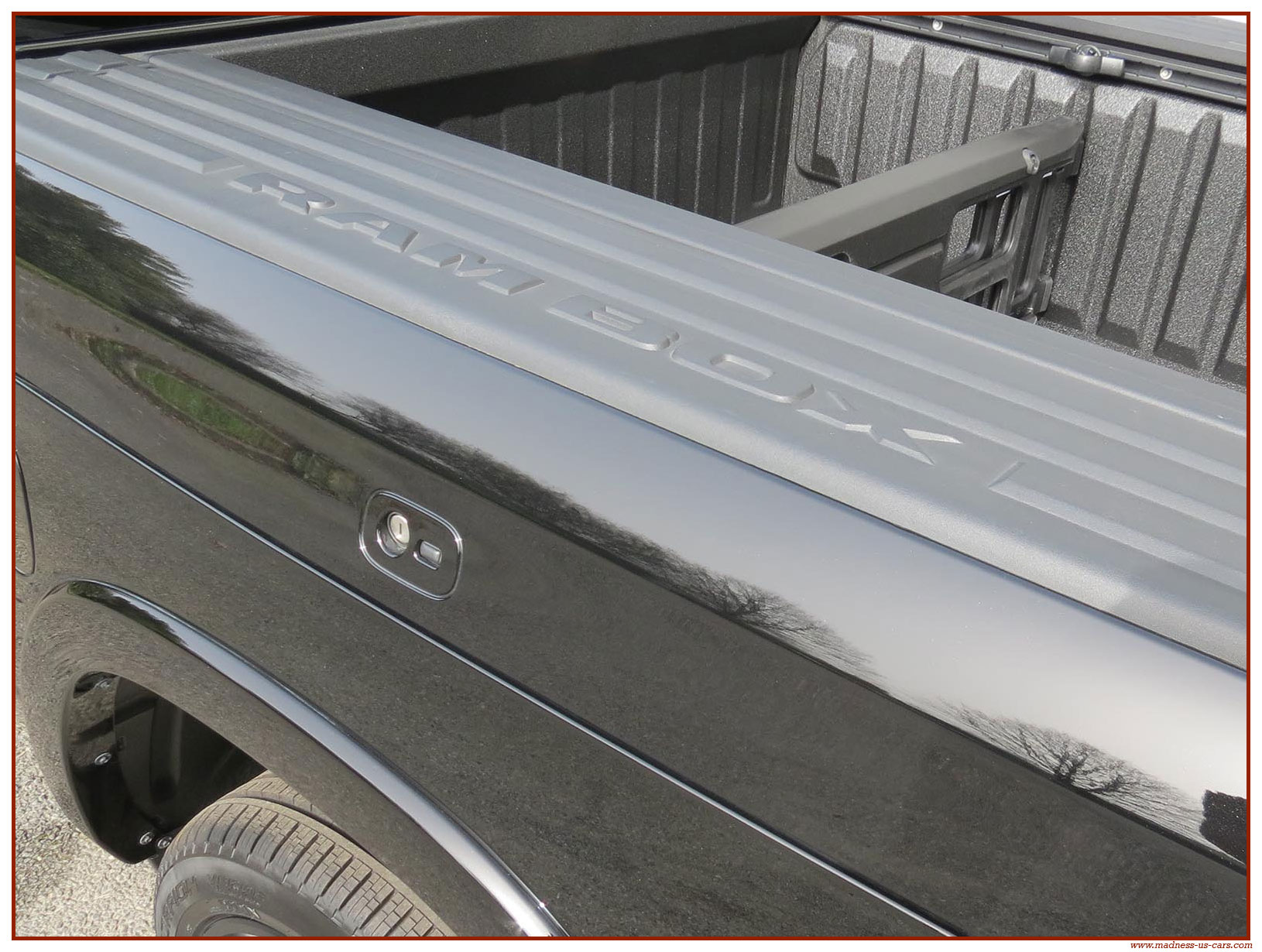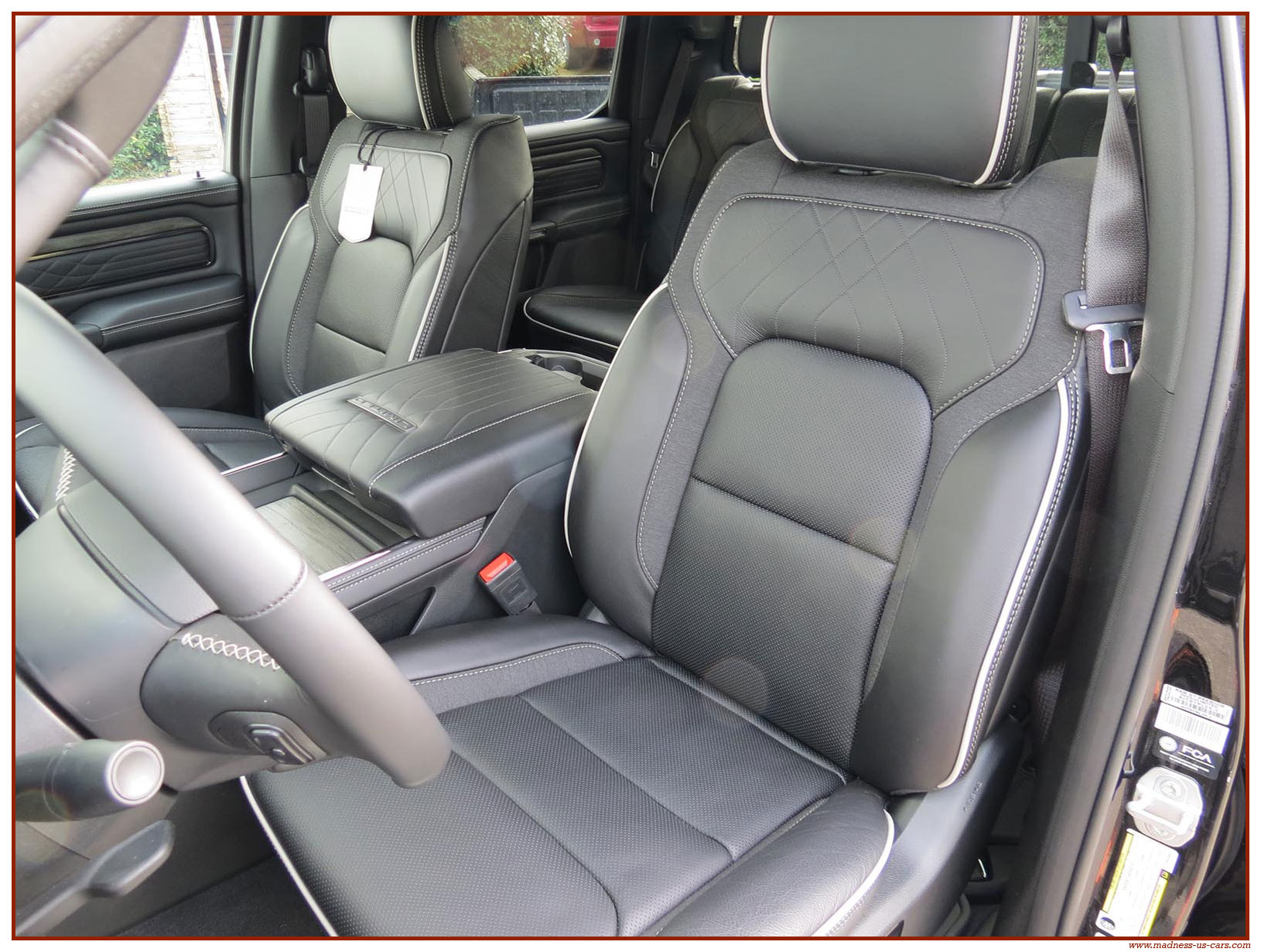 Madness US vous propose en France le nouveau Ram 1500 modèle 2025 dans la finition haut de gamme Limited avec le pack Night Edition. Ce package remplace les éléments chromés tels les jantes ou les pare chocs par des pièces de couleur noire. Ce Ram Limited 2025 Night Edition est équipé des coffres de bennes RamBox, des suspensions pneumatiques et du hayon multifonction. Le Ram 1500 Limited 2025 est équipé du nouveau moteur 6 cylindres en ligne Hurricane SST HO, ce moteur L6 Biturbo propose la puissance de 540 chevaux pour un couple de 705 Nm. Ce Ram 1500 de dernière génération, se singularise par sa montée en gamme, en effet il dispose d'équipements d'assistance à la conduite les plus modernes : Stationnement automatisé, aide au maintien dans la voie, régulateur de vitesse adaptatif avec freinage d'urgence, capteurs d'angle mort, caméra 360° ...