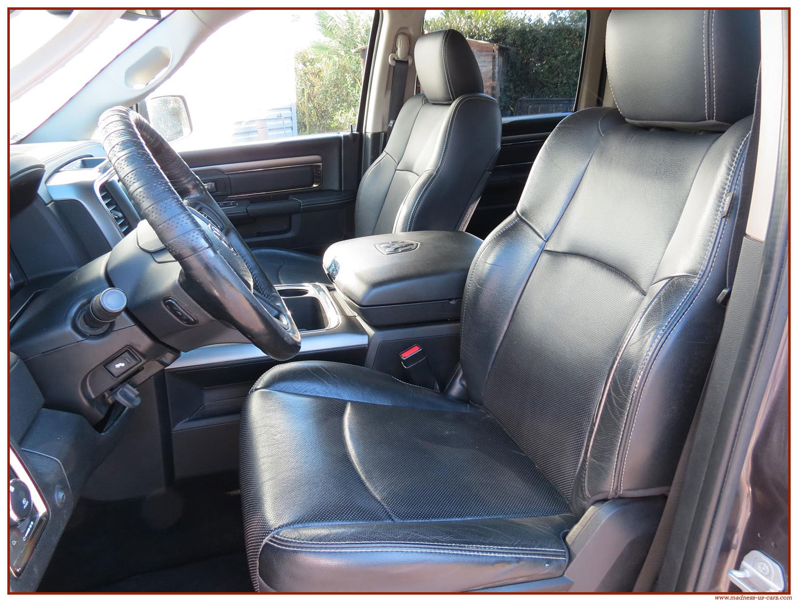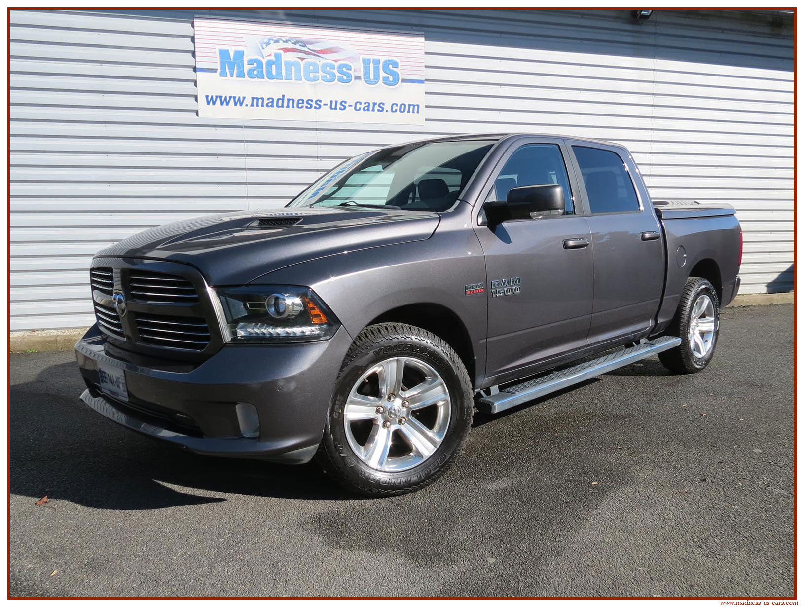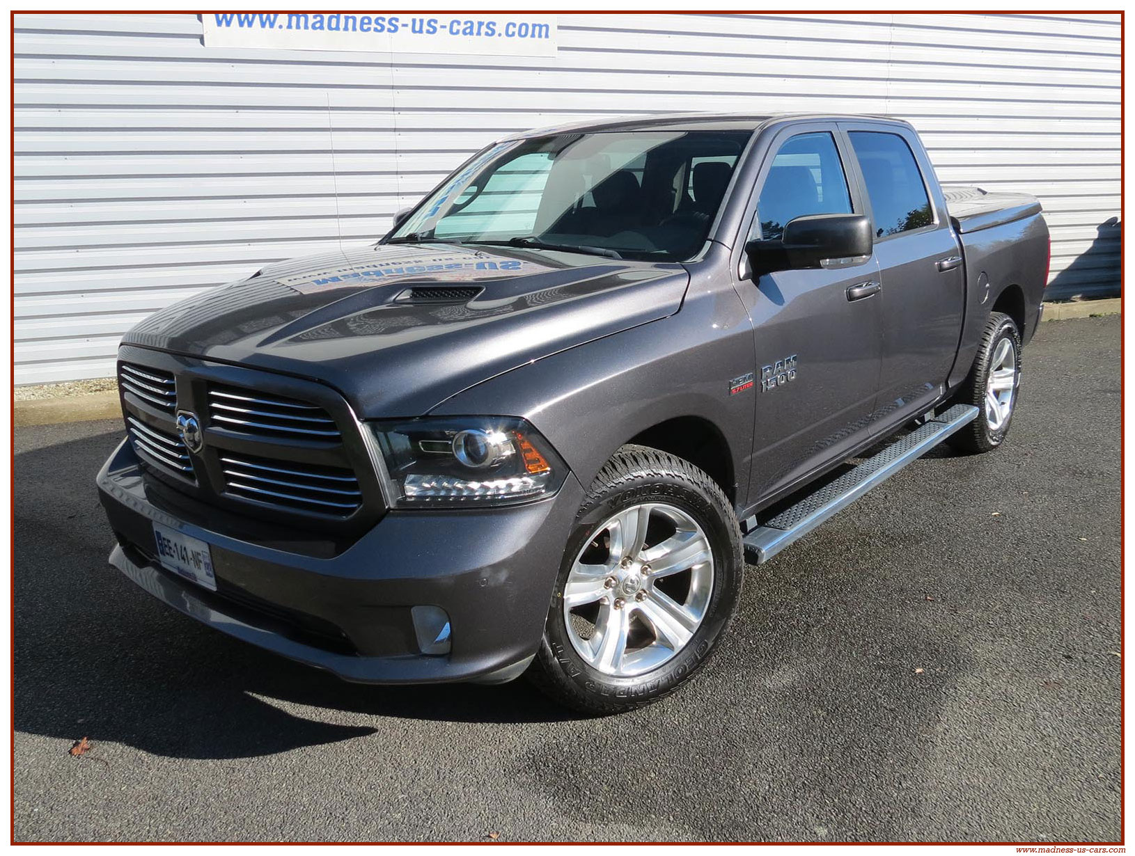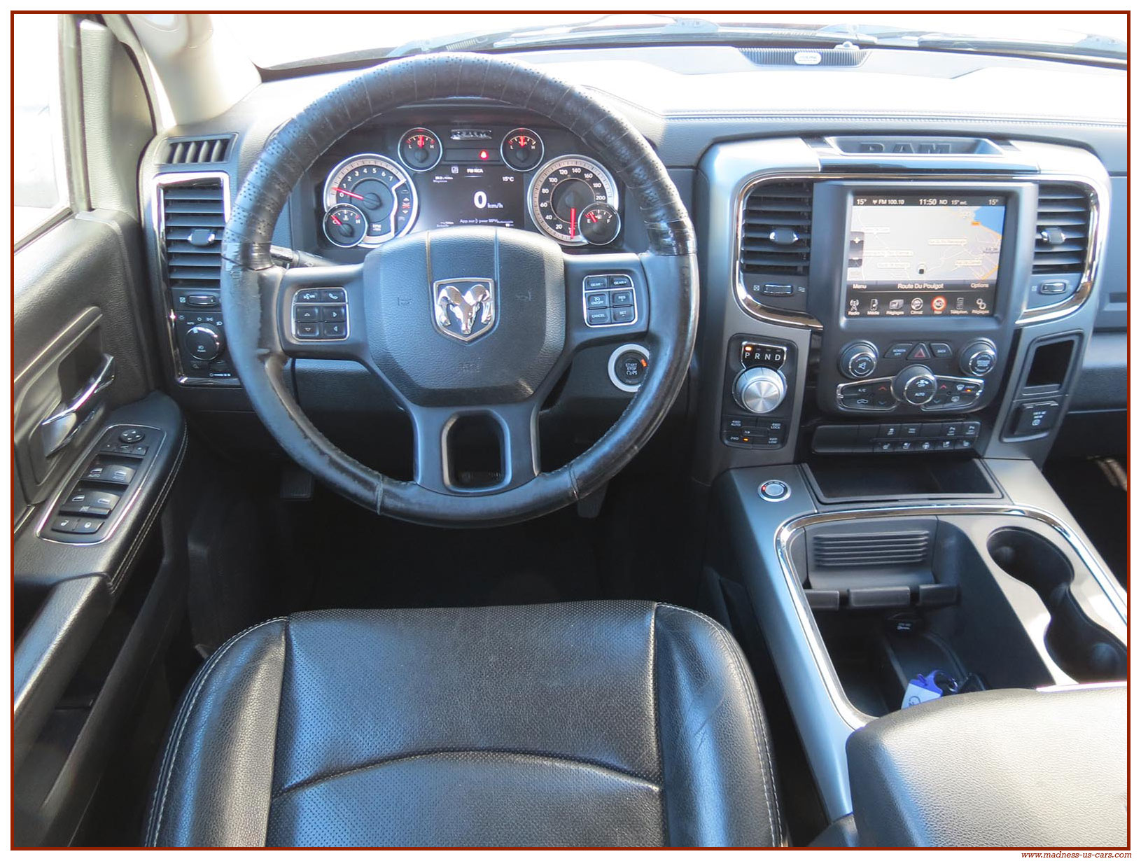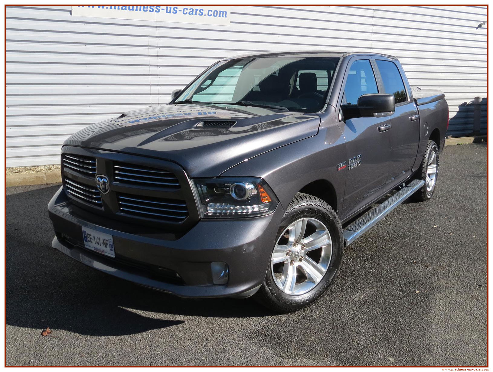 Madness US vous propose ce Ram 1500 Sport 2015 de première main. Ce Ram 1500 est équipé du moteur V8 Hemi de 395 chevaux équipé du système MDS de déconnexion de cylindres ainsi que d'un système GPL injecté avec réservoir 122 litres. Ce Ram 2015 est équipé de la boite de vitesse automatique à 8 rapports. Le Ram 1500 2014 bénéficie d'un équipement bien complet : Sellerie cuir noire avec sièges électriques chauffants et climatisés, système audio Alpine avec navigation GPS, Bluetooth et caméra de recul. Il est aussi équipé d'un tonneau cover rigide Jason de la couleur de la carrosserie et d'un échappement Flowmaster. Ce Ram 1500 Sport GPL 2015 est en stock chez Madness US, il est vendu en Carte Grise Française et garanti pendant 6 mois.