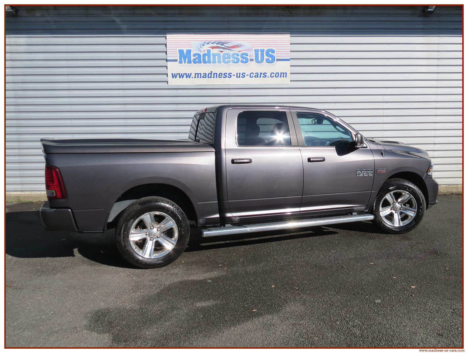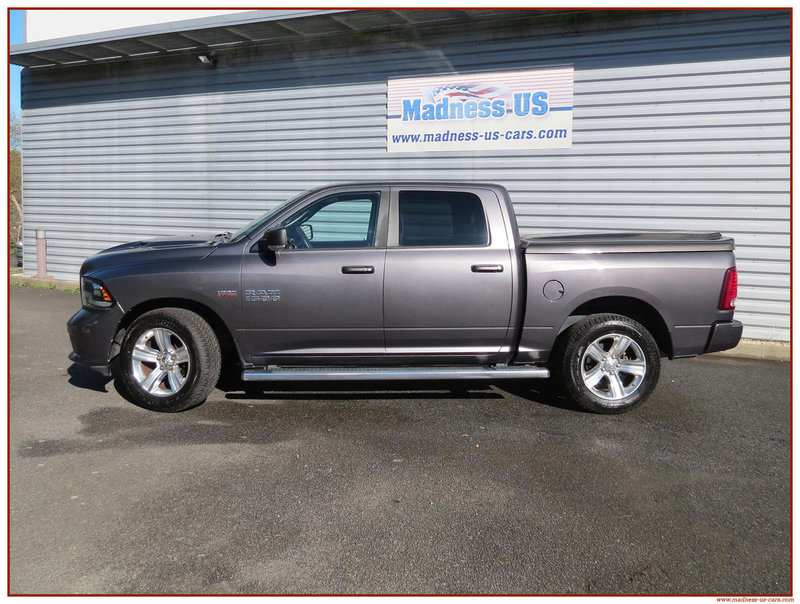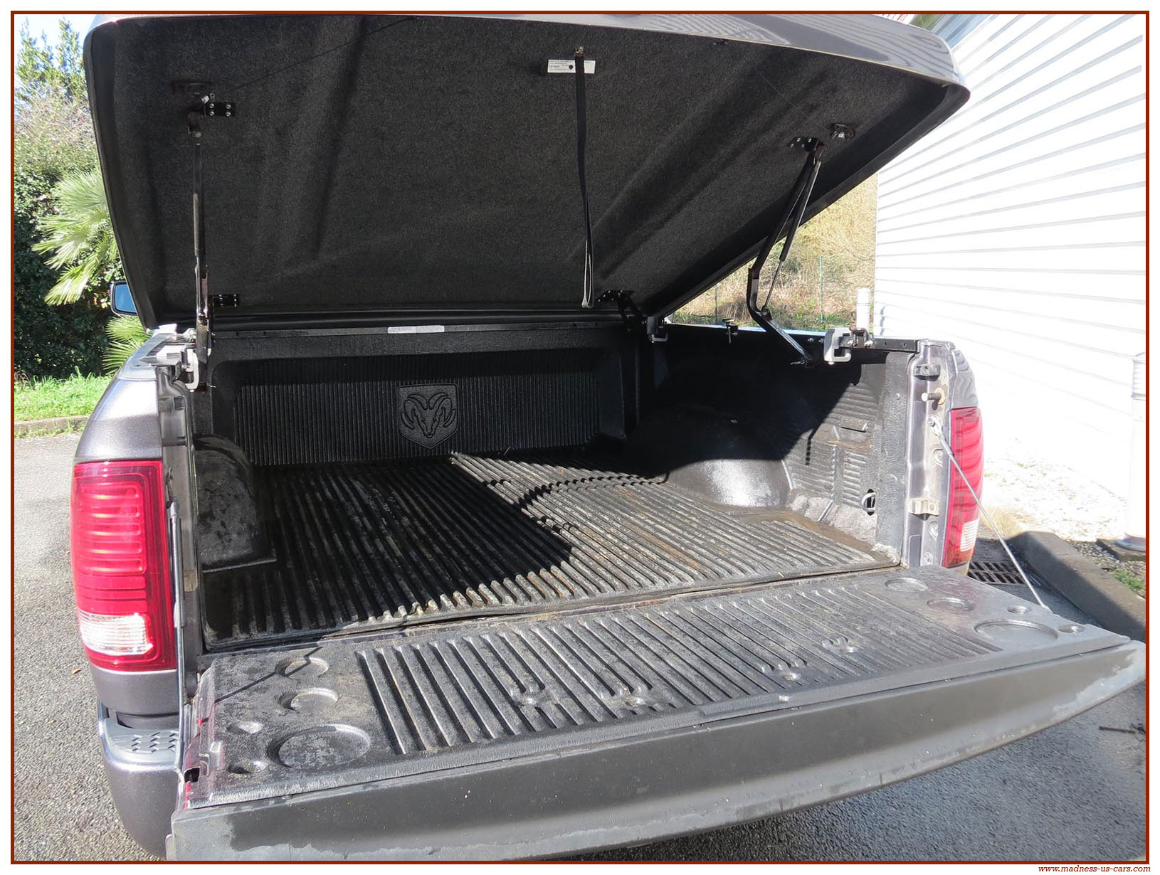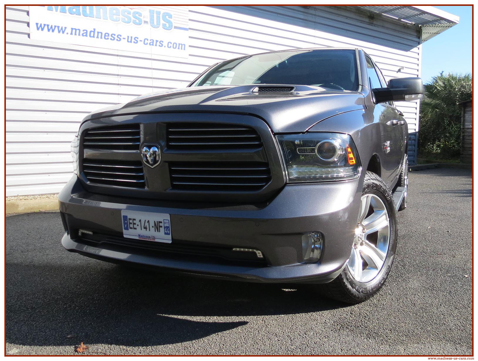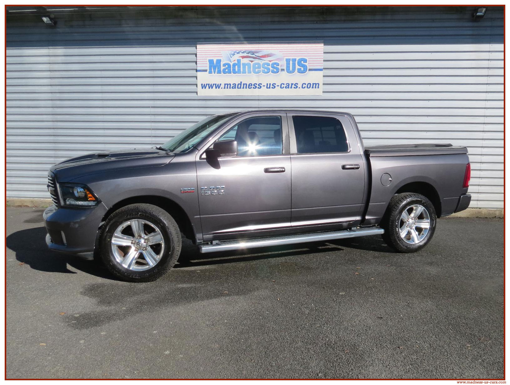 Madness US vous propose ce Ram 1500 Sport 2015 de première main. Ce Ram 1500 est équipé du moteur V8 Hemi de 395 chevaux équipé du système MDS de déconnexion de cylindres ainsi que d'un système GPL injecté avec réservoir 122 litres. Ce Ram 2015 est équipé de la boite de vitesse automatique à 8 rapports. Le Ram 1500 2014 bénéficie d'un équipement bien complet : Sellerie cuir noire avec sièges électriques chauffants et climatisés, système audio Alpine avec navigation GPS, Bluetooth et caméra de recul. Il est aussi équipé d'un tonneau cover rigide Jason de la couleur de la carrosserie et d'un échappement Flowmaster. Ce Ram 1500 Sport GPL 2015 est en stock chez Madness US, il est vendu en Carte Grise Française et garanti pendant 6 mois.