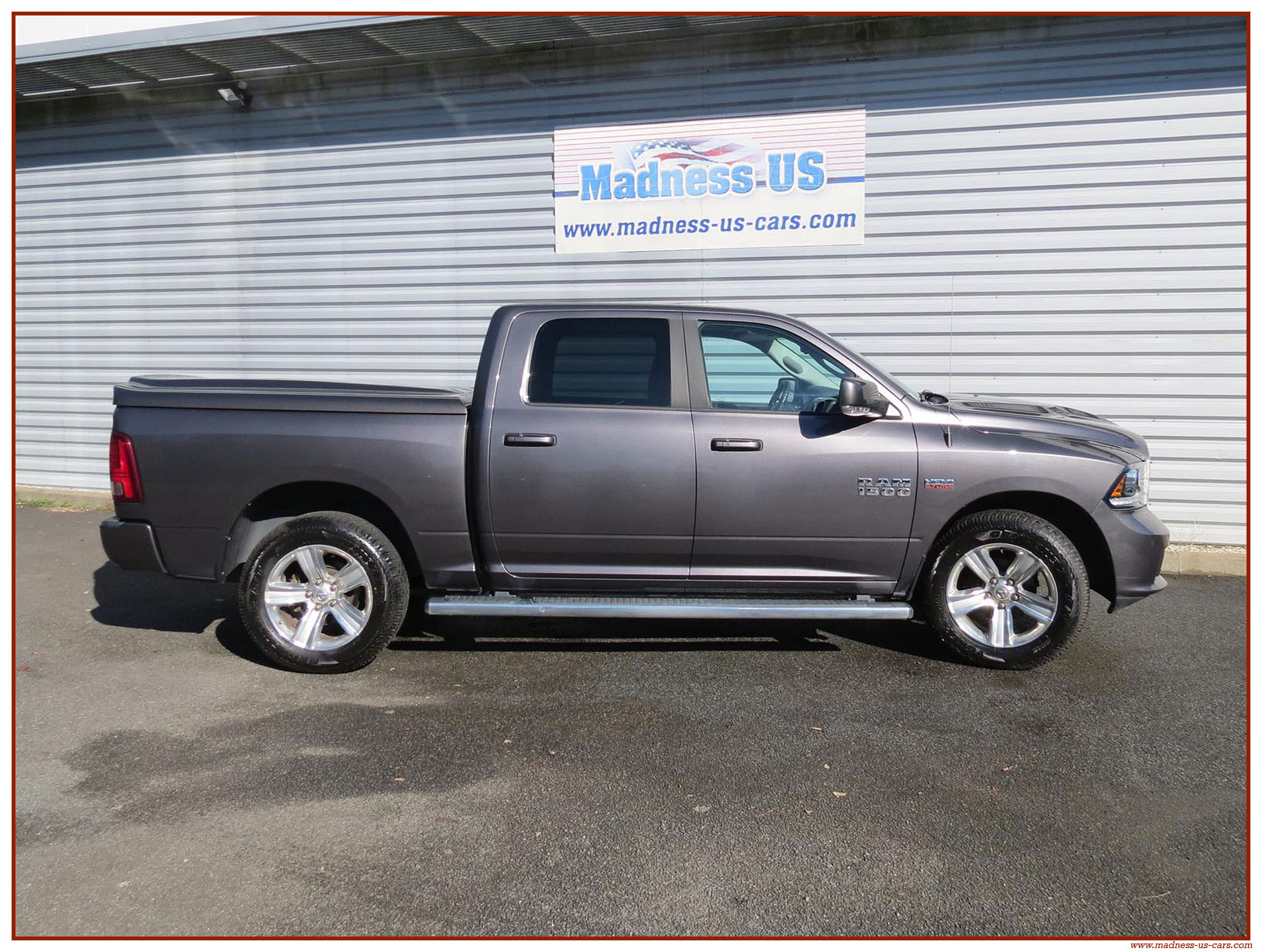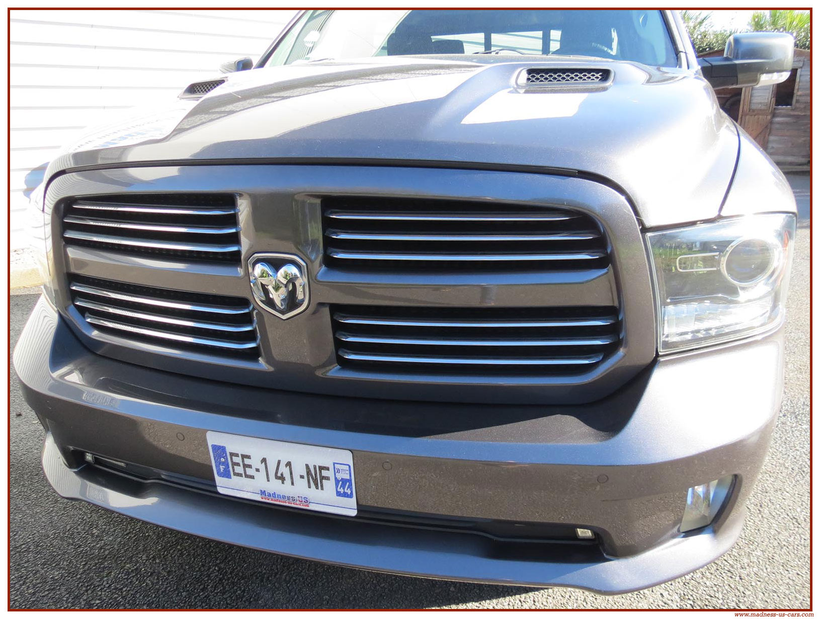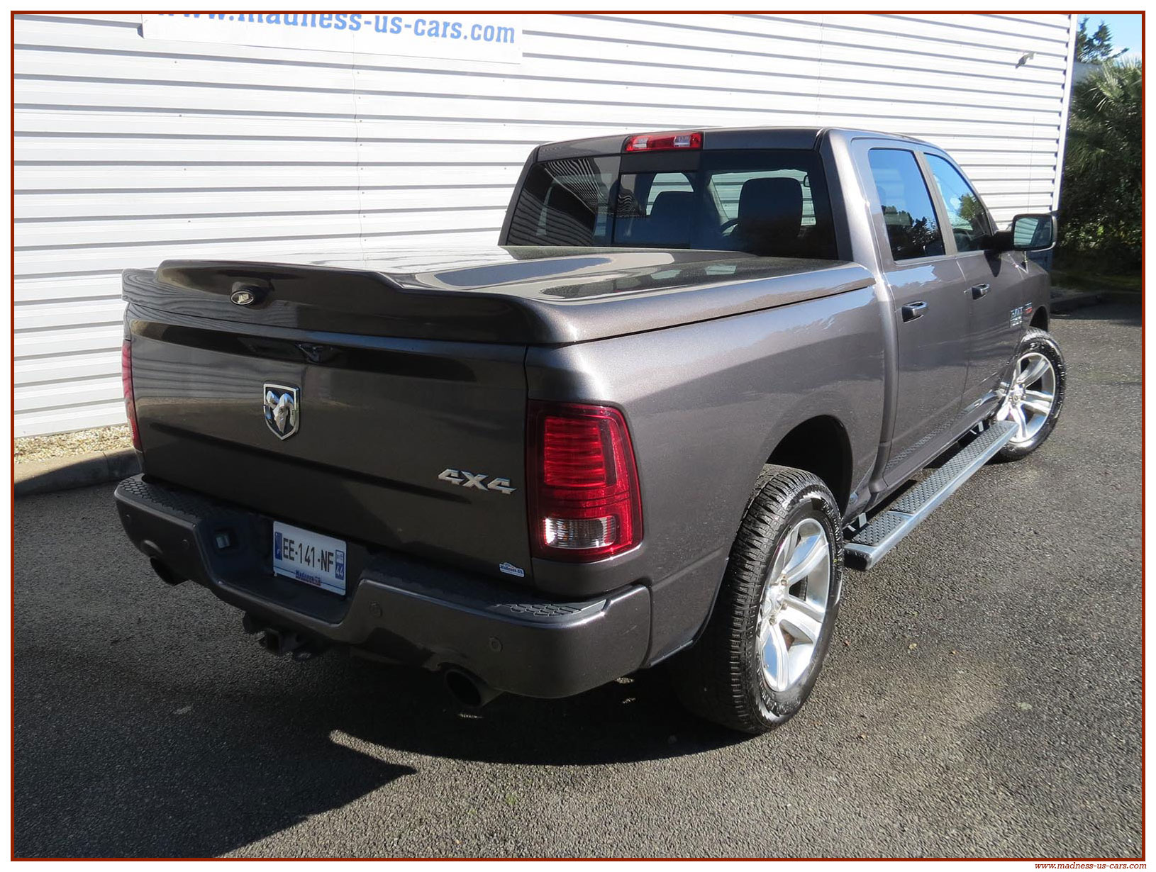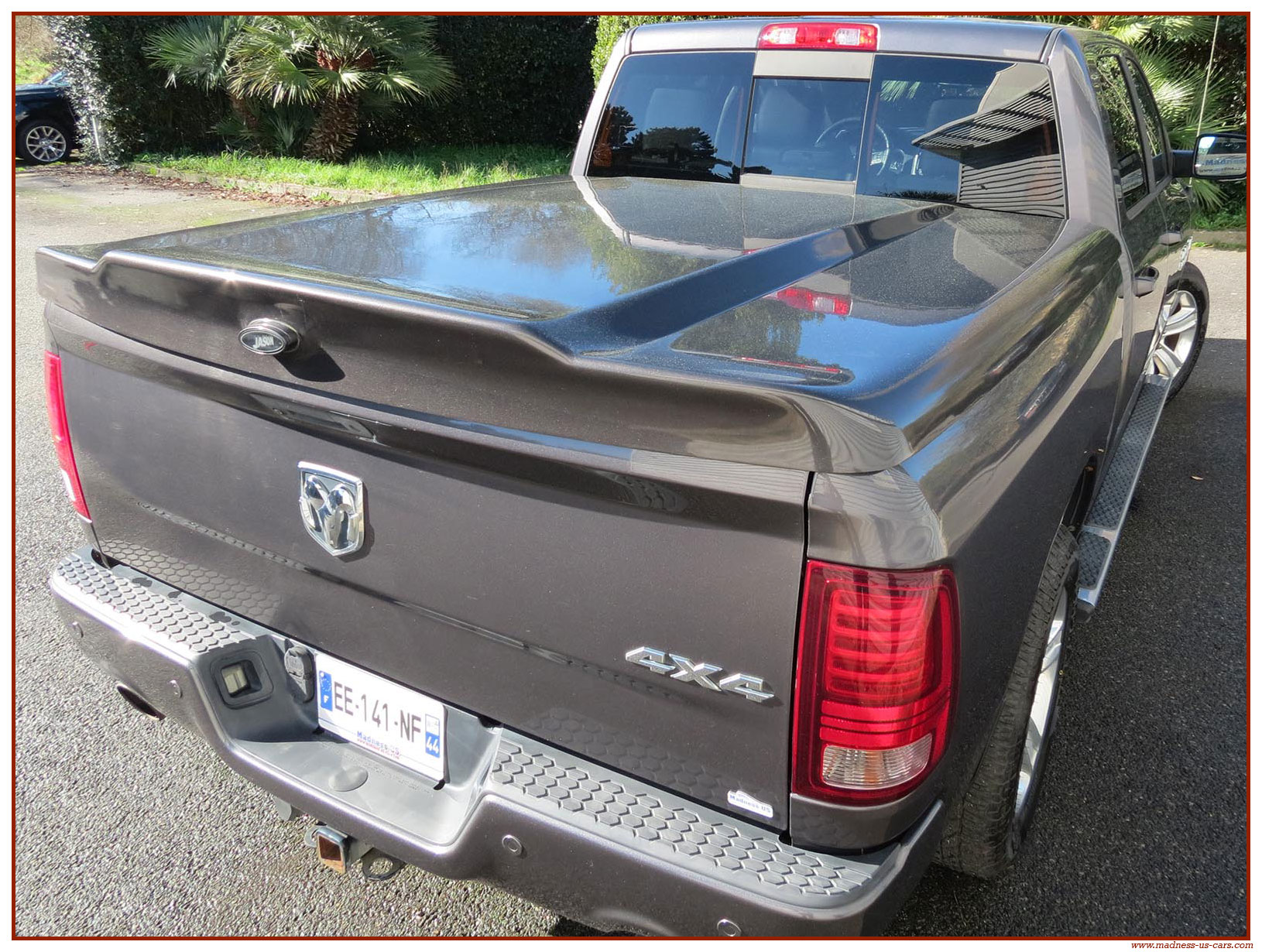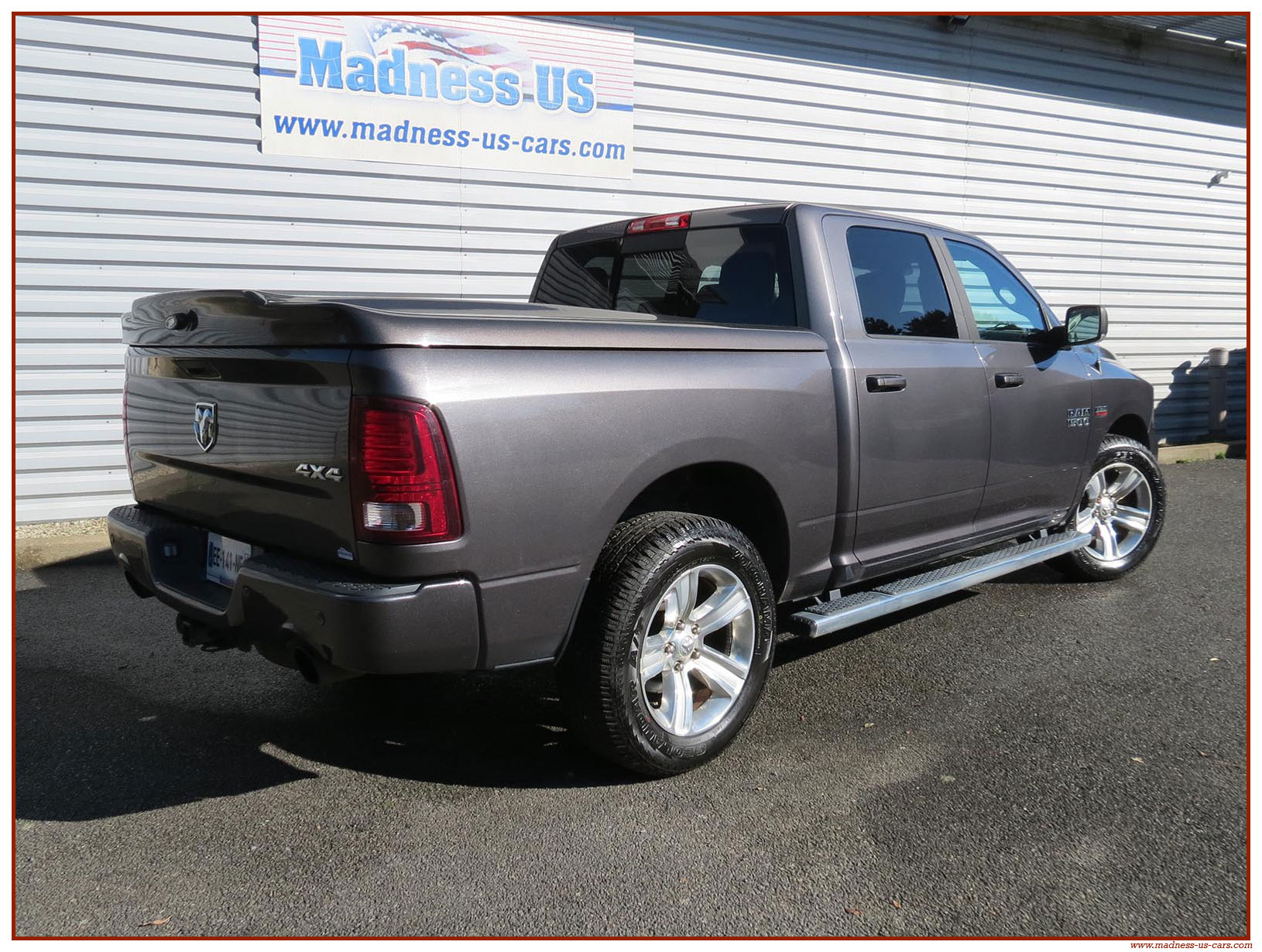Madness US vous propose ce Ram 1500 Sport 2015 de première main. Ce Ram 1500 est équipé du moteur V8 Hemi de 395 chevaux équipé du système MDS de déconnexion de cylindres ainsi que d'un système GPL injecté avec réservoir 122 litres. Ce Ram 2015 est équipé de la boite de vitesse automatique à 8 rapports. Le Ram 1500 2014 bénéficie d'un équipement bien complet : Sellerie cuir noire avec sièges électriques chauffants et climatisés, système audio Alpine avec navigation GPS, Bluetooth et caméra de recul. Il est aussi équipé d'un tonneau cover rigide Jason de la couleur de la carrosserie et d'un échappement Flowmaster. Ce Ram 1500 Sport GPL 2015 est en stock chez Madness US, il est vendu en Carte Grise Française et garanti pendant 6 mois.