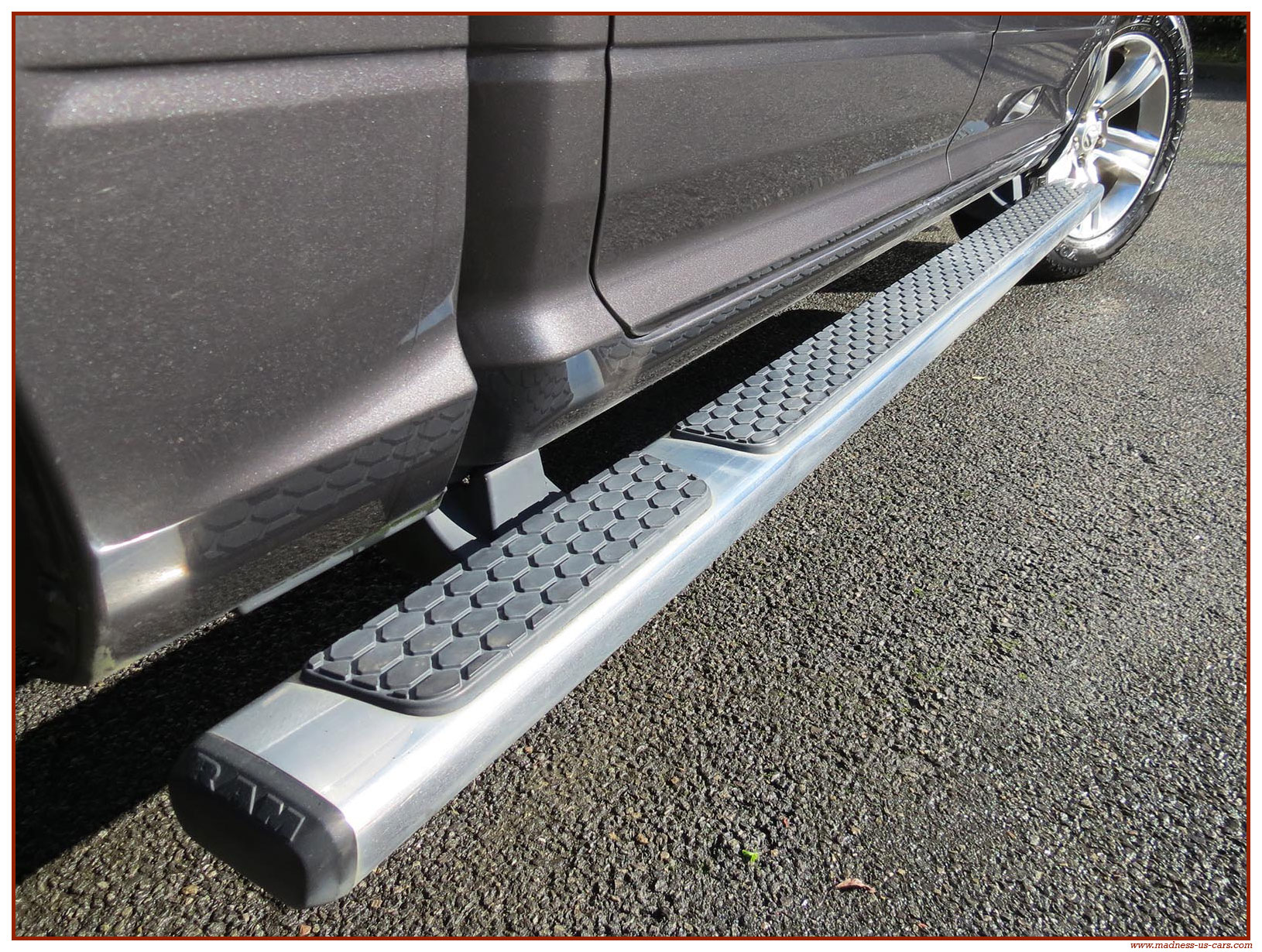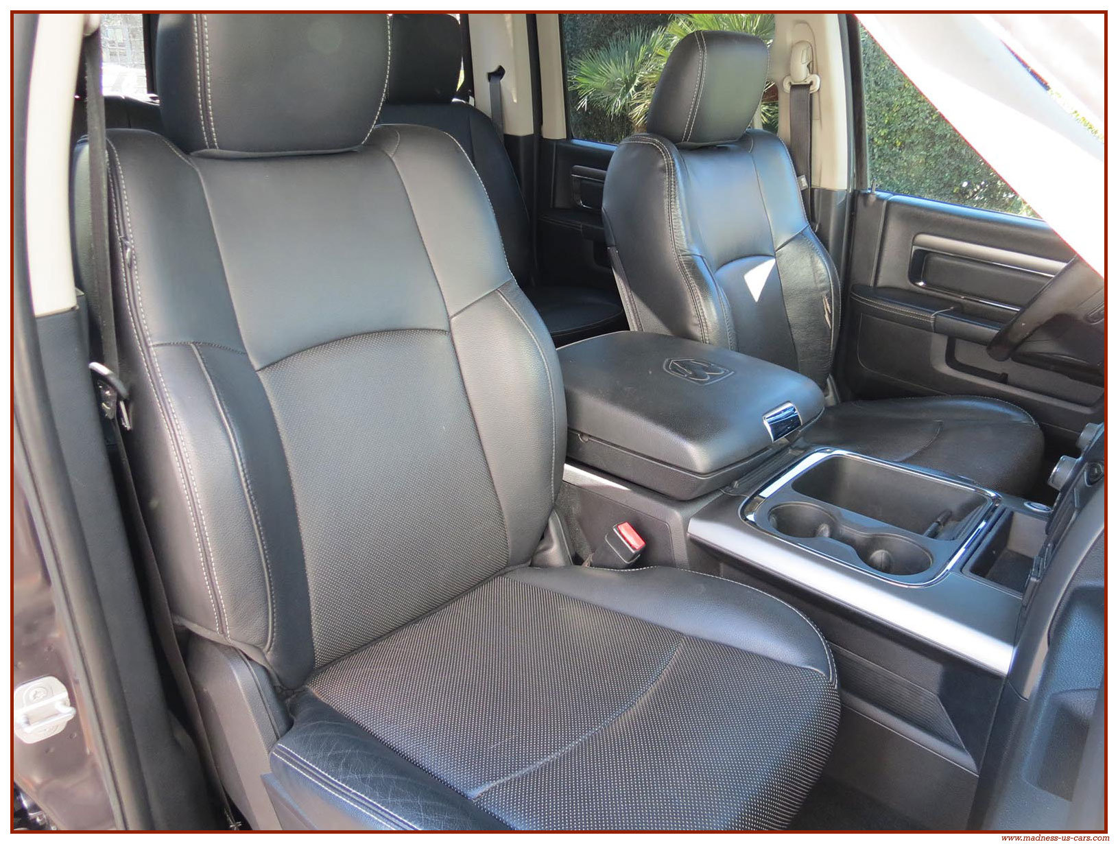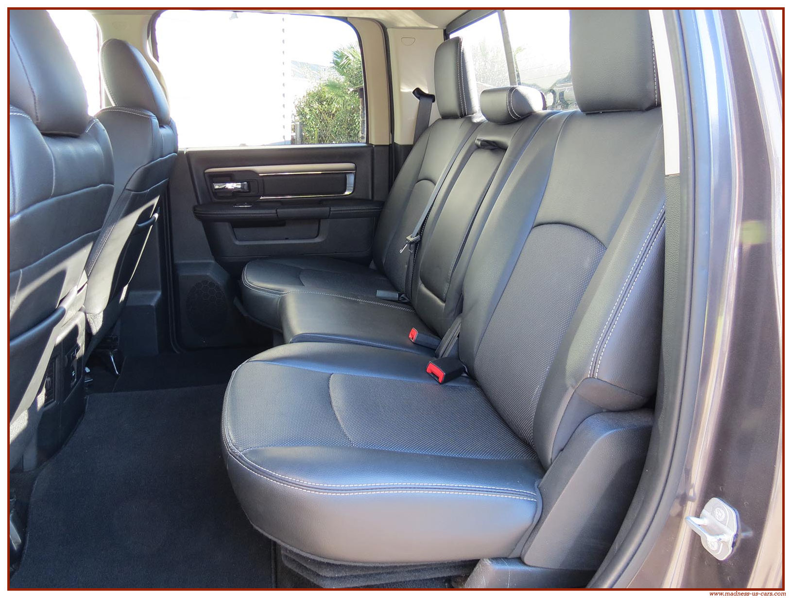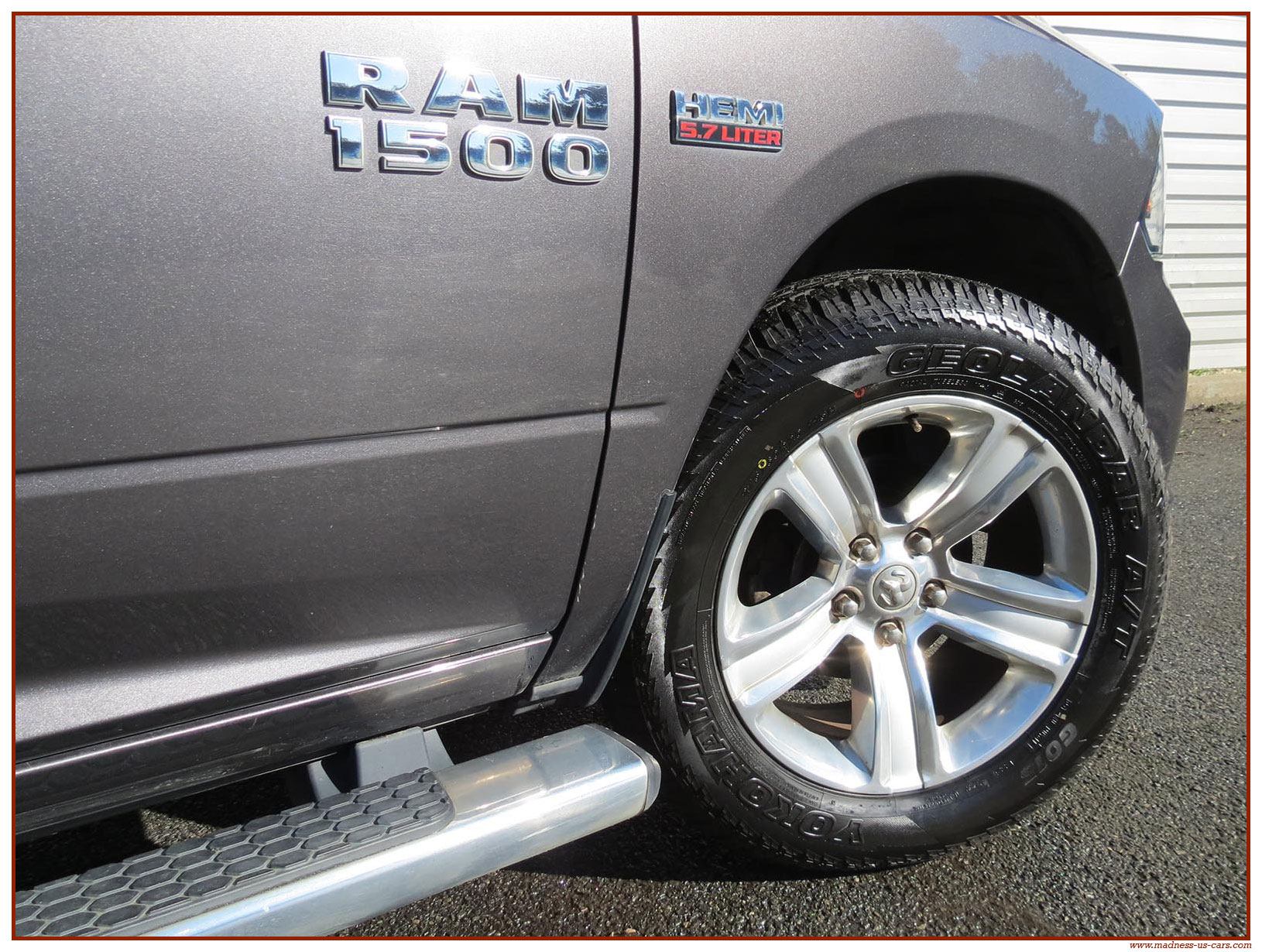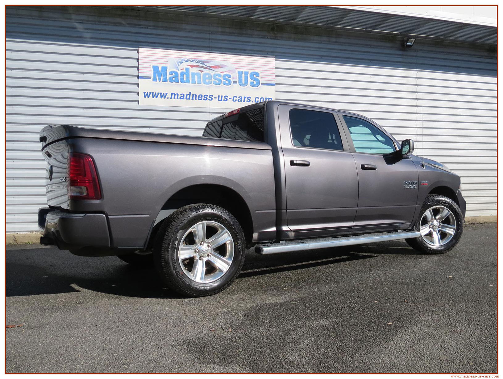 Madness US vous propose ce Ram 1500 Sport 2015 de première main. Ce Ram 1500 est équipé du moteur V8 Hemi de 395 chevaux équipé du système MDS de déconnexion de cylindres ainsi que d'un système GPL injecté avec réservoir 122 litres. Ce Ram 2015 est équipé de la boite de vitesse automatique à 8 rapports. Le Ram 1500 2014 bénéficie d'un équipement bien complet : Sellerie cuir noire avec sièges électriques chauffants et climatisés, système audio Alpine avec navigation GPS, Bluetooth et caméra de recul. Il est aussi équipé d'un tonneau cover rigide Jason de la couleur de la carrosserie et d'un échappement Flowmaster. Ce Ram 1500 Sport GPL 2015 est en stock chez Madness US, il est vendu en Carte Grise Française et garanti pendant 6 mois.