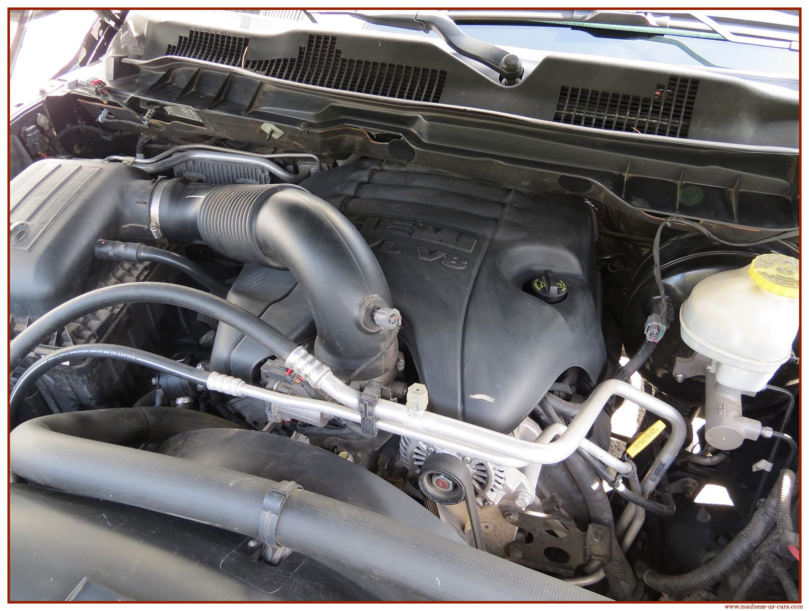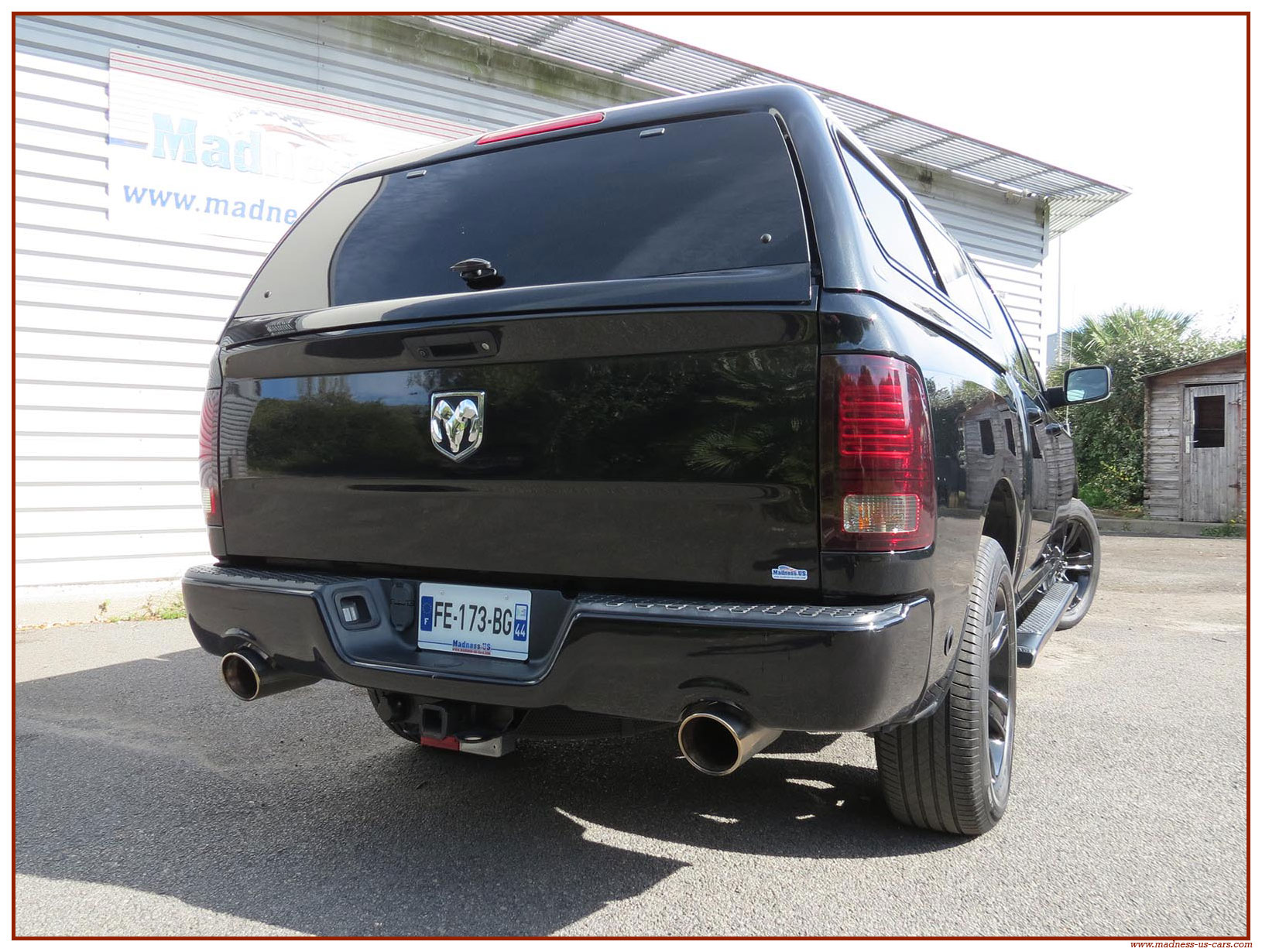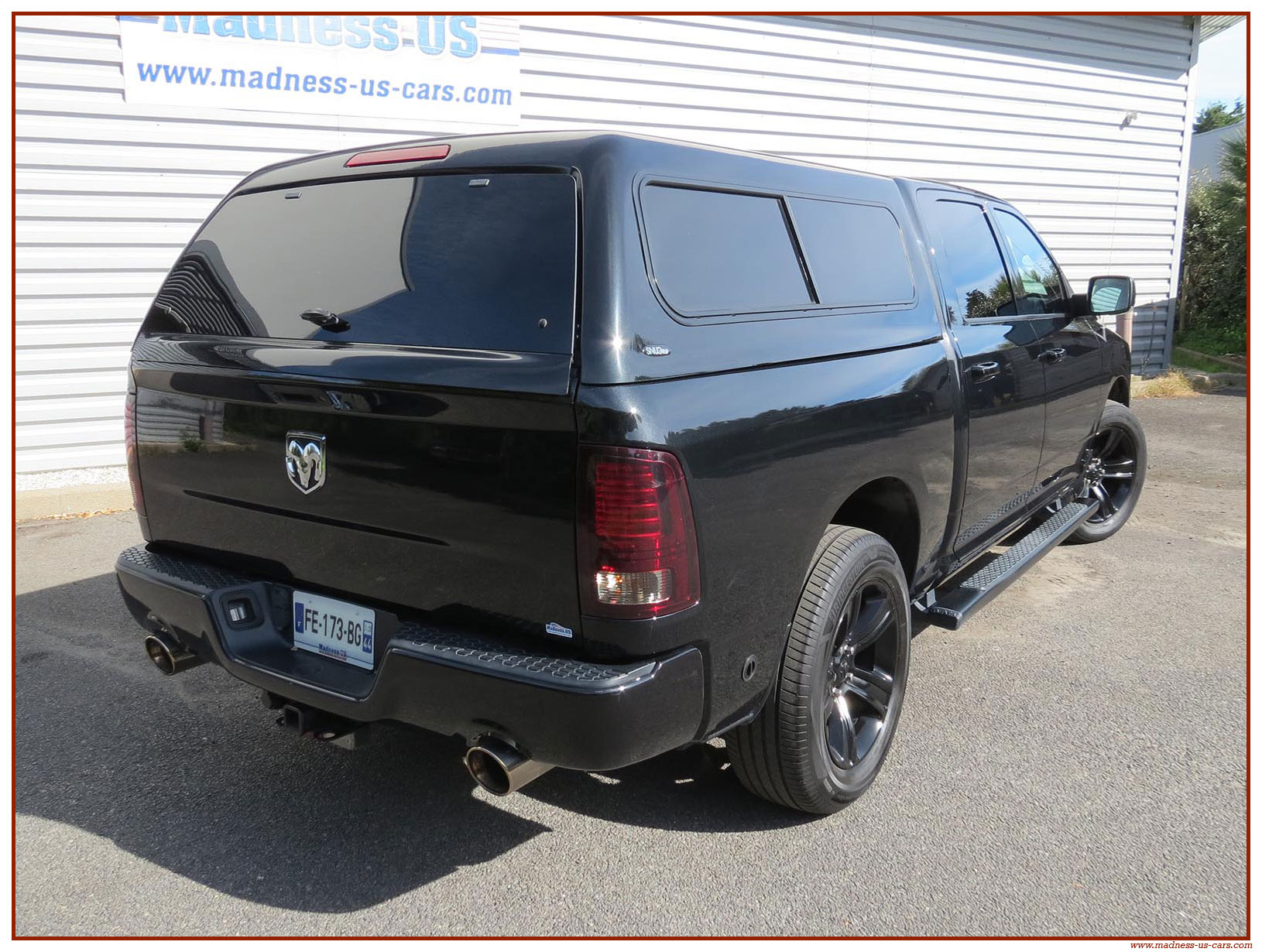 4x4 - V8 Hemi - 5,7 L - MDS - 395 chevaux - 556 Nm - Boîte de vitesse automatique 8 rapports - ABS - Finition Sport - Equipé GPL injecté - Sellerie cuir noir - Cabine Crew Cab - Ordinateur de bord - Jantes aluminium noires 20 pouces - Echappement Magnaflow - Démarrage sans clé - Démarrage à distance - Fermeture centralisée - Quatre vitres électriques - Climatisation automatique séparée - Airbags frontaux et latéraux - Régulateur de vitesse - Auditorium USB - GPS Europe - Equipement téléphone mains libres Bluetooth - Sièges conducteur et passager réglables électriquement - Sièges avant chauffants et climatisés - Volant chauffant - Caméra de recul - Toit ouvrant électrique - Lunette arrière ouvrante électriquement et dégivrante - Hard top SnugTop - Bed liner - Tiroir de benne Bedslide - Marchepieds noirs - Ouverture de benne assistée - Attelage - Alarme - Antibrouillards.