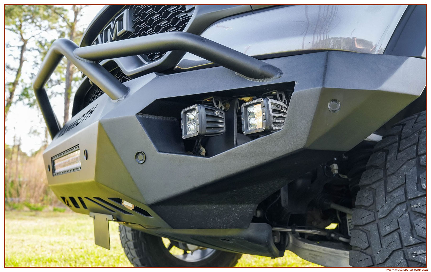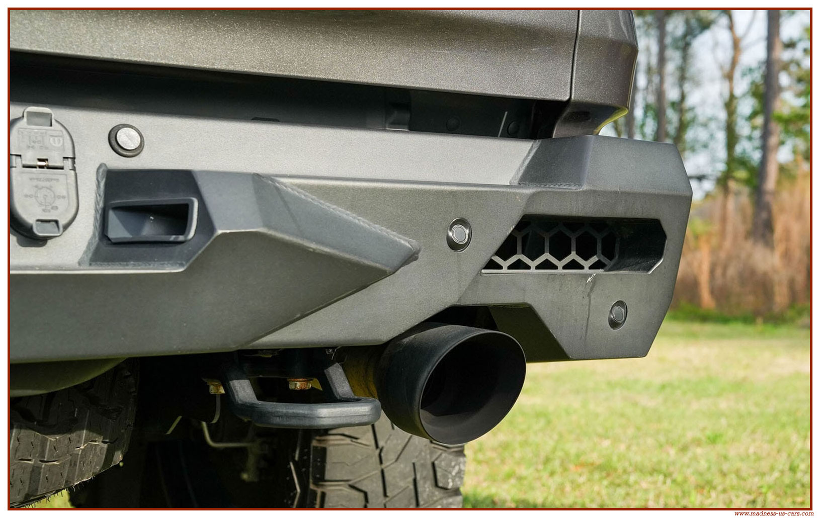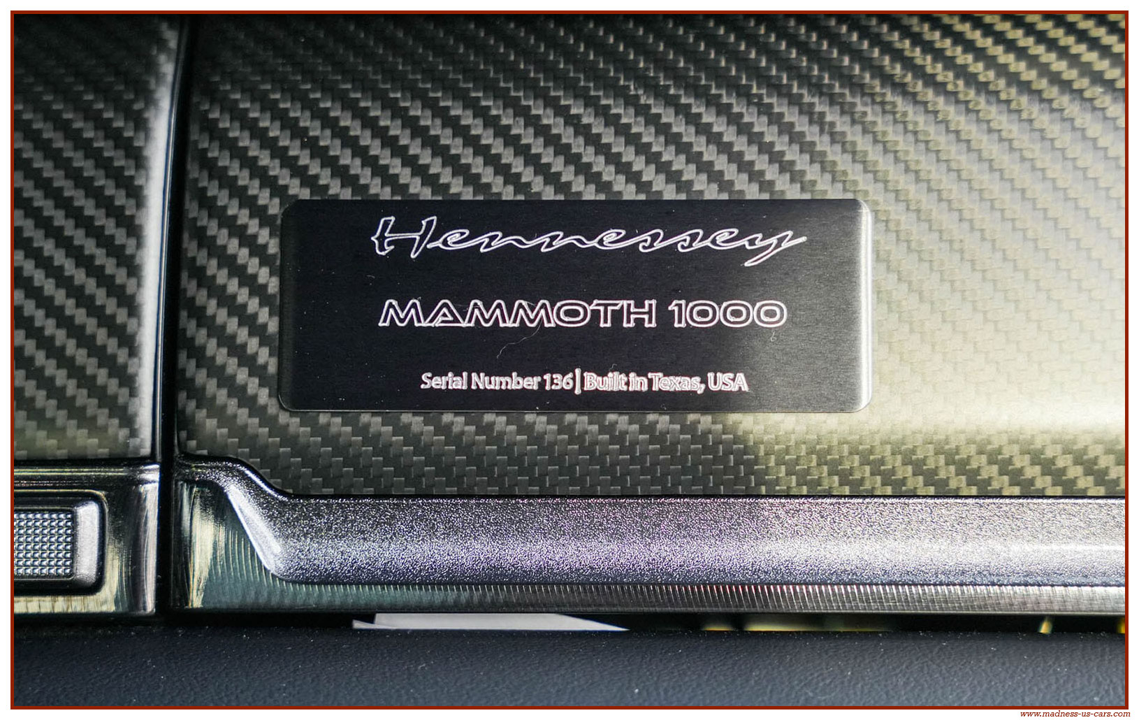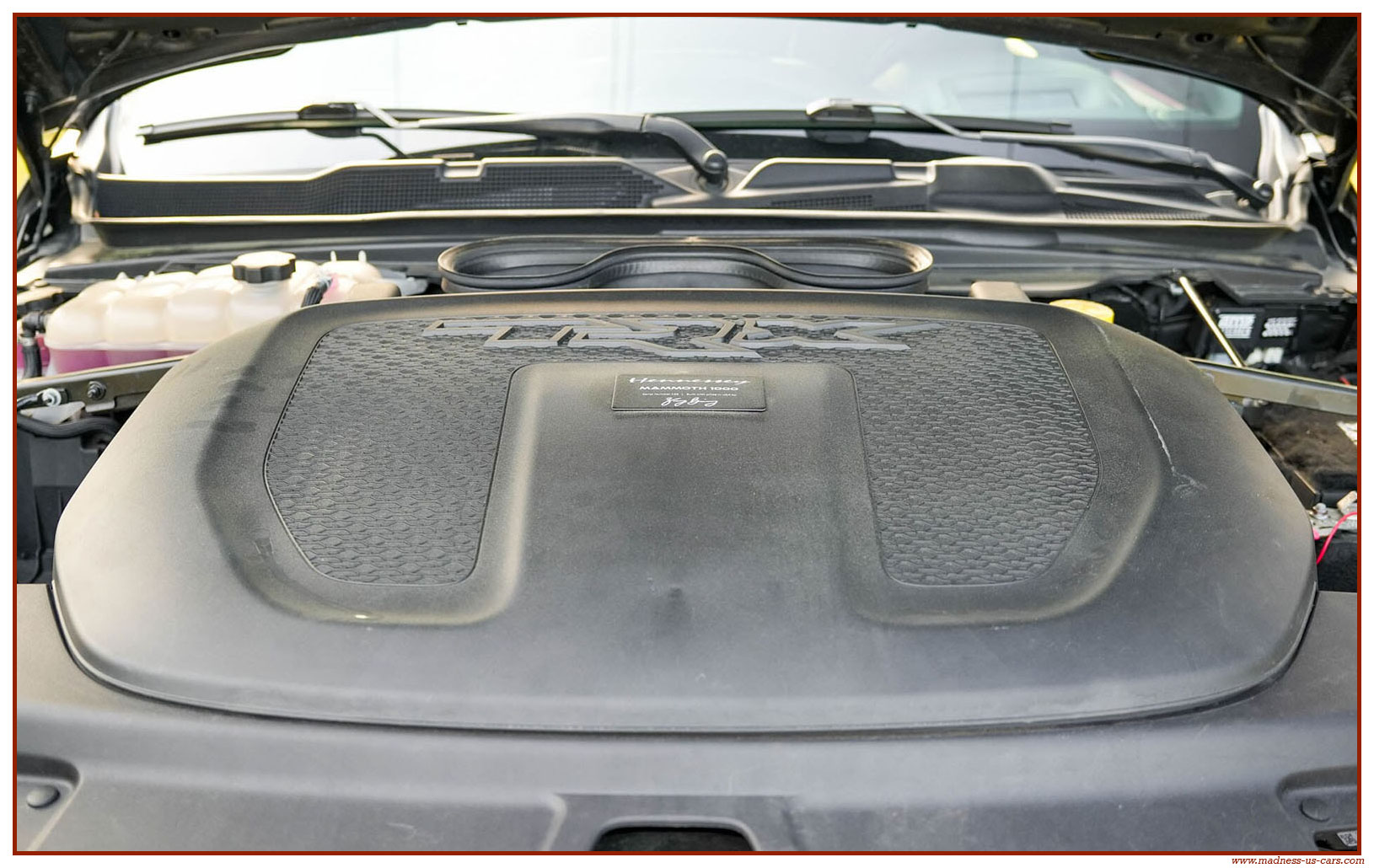 Madness US vous propose la version la plus exclusive du Ram 1500 TRX. Le Hennessey Mammoth 1000 est la version ultime du Ram TRX passée entre les mains du célèbre préparateur Texan, 200 exemplaires seulement produits ! Hennessey à complètement revu le V8 Supercharged de 6,2 litres de cylindrée : Il développe maintenant la puissance de 1012 chevaux pour un couple de 1312 Nm. C'est le pickup le plus puissant du marché, et aussi le plus performant : Le 0 à 100 km/h est abattu en 3,2 secondes seulement.