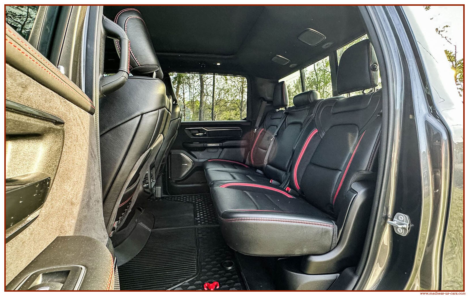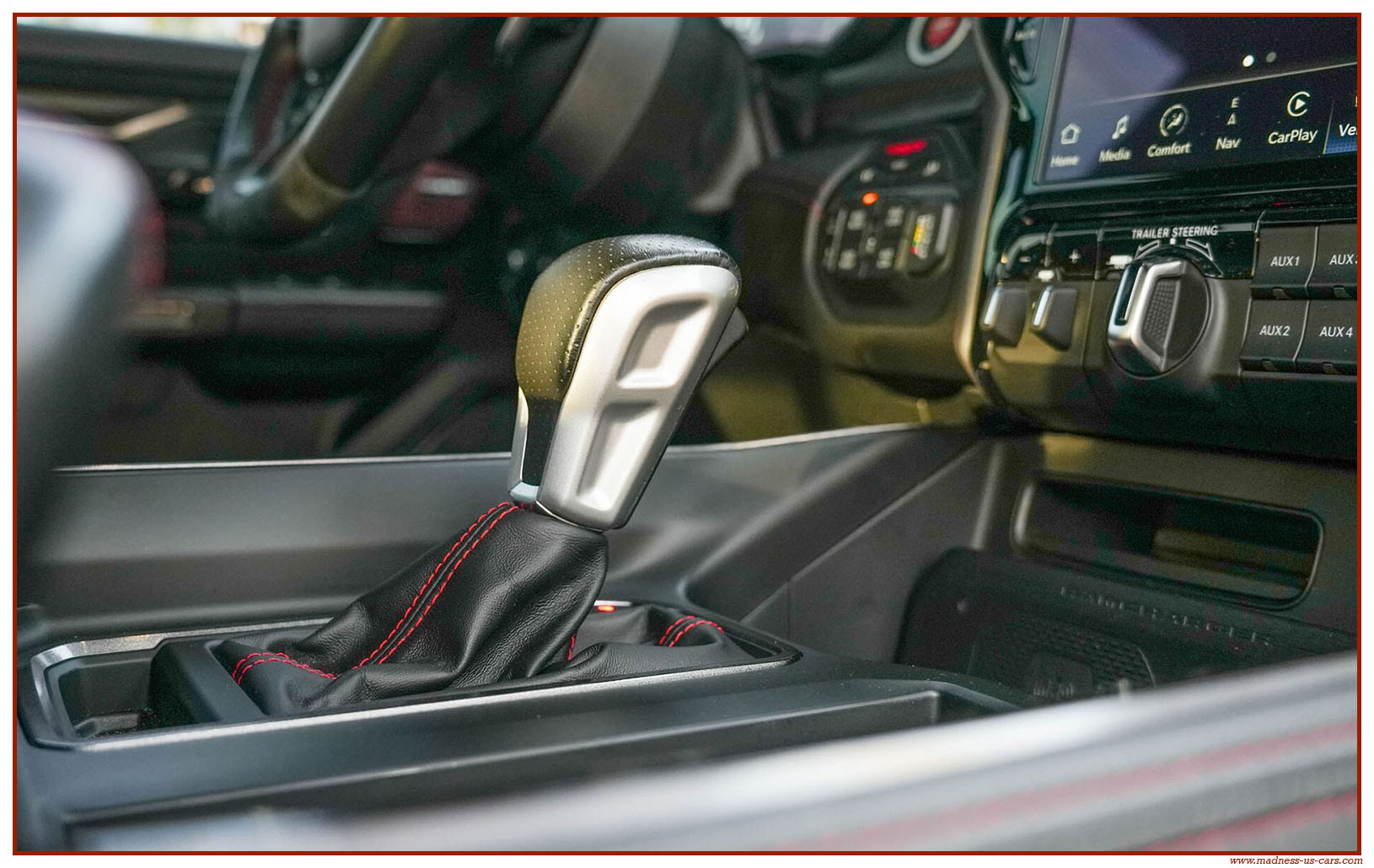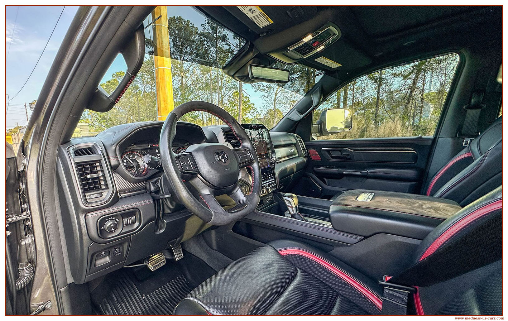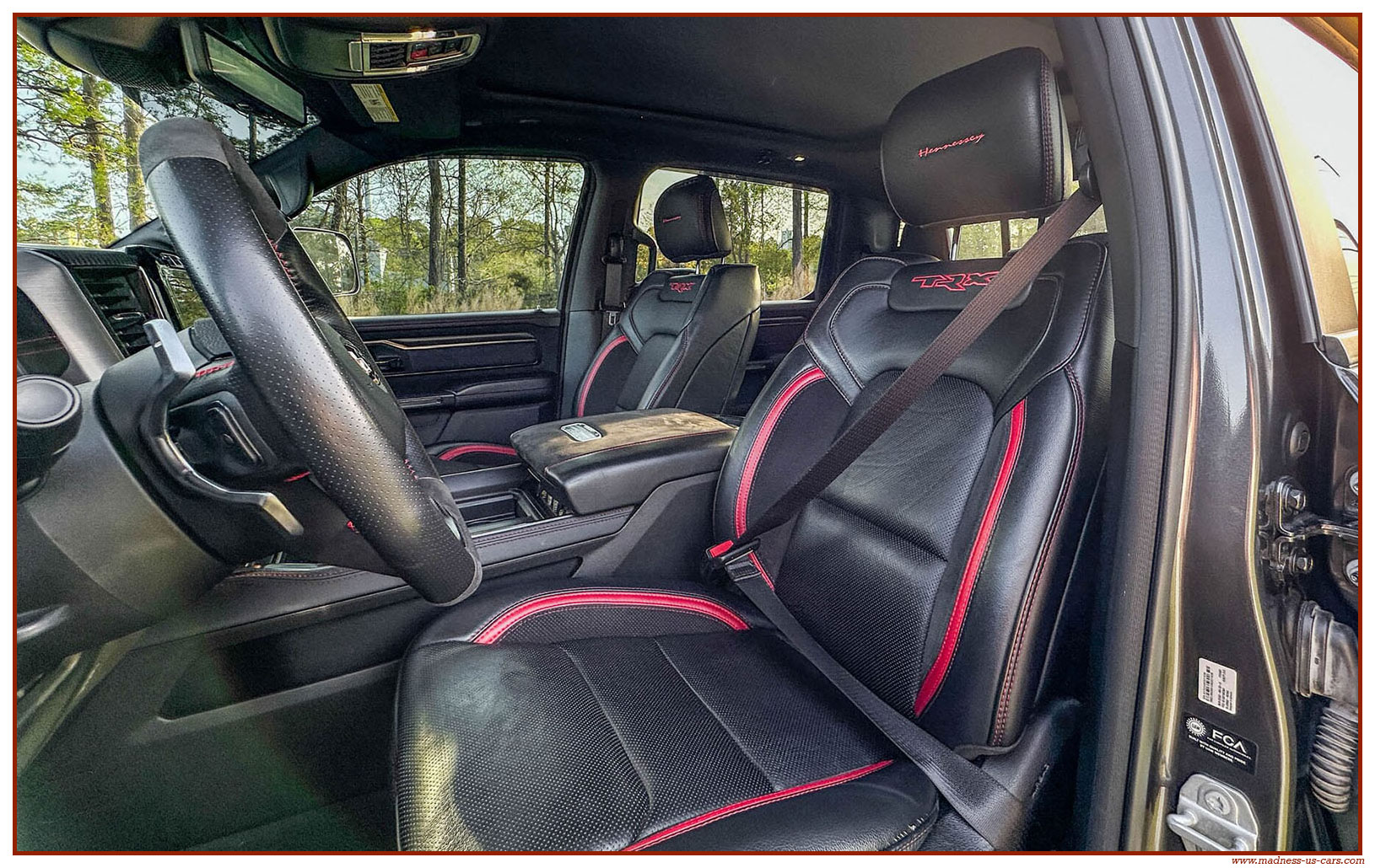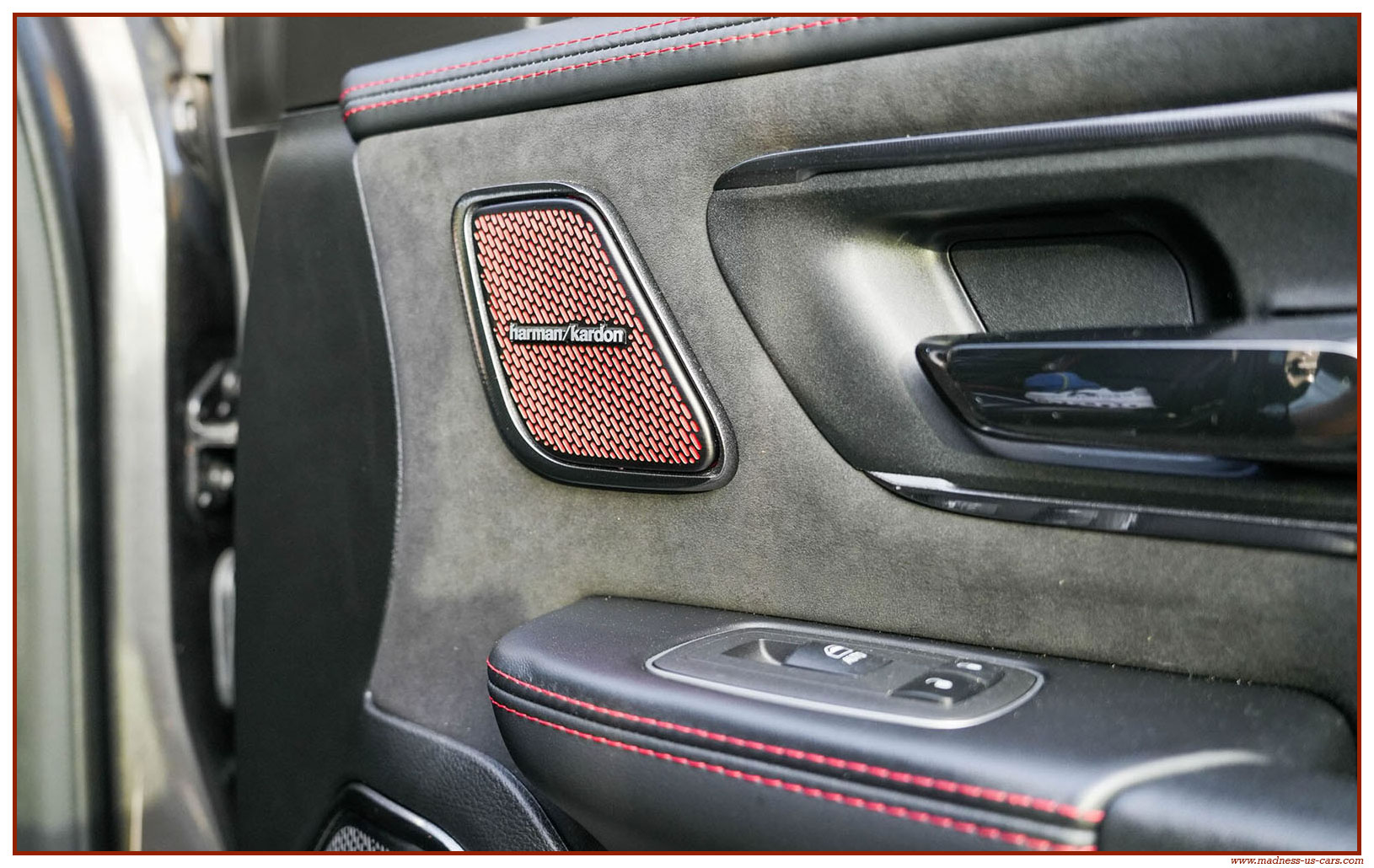 4x4 - V8 Hemi Supercharged - 6,2 L - 1012 chevaux - 1312 Nm - Boîte automatique 8 rapports - Série limitée numérotée 136/200 - Cabine Crew Cab - Pare chocs avant et arrière Hennessey - Réservoir 124 litres - Sellerie cuir alcantara TRX Hennessey - Palettes au volant - Affichage tête haute - Launch Control - Ordinateur de bord - Performance Pages - Jantes Hennessey noires 20 pouces - Pneus Toyo Open Country 37 pouces - ABS - ESP - Amortisseurs Bilstein Black Hawk - Démarrage sans clé - Démarrage à distance - Fermeture centralisée - Quatre vitres électriques - Rétroviseur intérieur caméra - Rétroviseurs électriques et rabattables - Toit ouvrant panoramique à double panneau vitré - Climatisation automatique séparée - Airbags frontaux et latéraux - Pédalier réglable électriquement - Régulateur de vitesse adaptatif avec anticollision - Aide au maintien dans la voie - Feux à leds - Auditorium USB Harman Kardon 19 enceintes - Ecran tactile UConnect 12 pouces - Navigation GPS Europe - Equipement téléphone mains libres Bluetooth - Apple CarPlay - Android Auto - Applications Off Road - Chargeur smartphone par induction - Sièges électriques à mémoire - Sièges avant chauffants et climatisés - Volant chauffant - Sièges arrière chauffants et climatisés - Caméra 360° - Radars de stationnement avant et arrière - Capteurs angles morts - Détecteur de pluie - Lunette arrière ouvrante électriquement et dégivrante - Ouverture de benne assistée - Ouverture de benne à distance - Echappement double - Frein de stationnement électrique - Couvre benne - Bed liner pulvérisé - Marchepieds électriques - Attelage - Alarme - Antibrouillards.